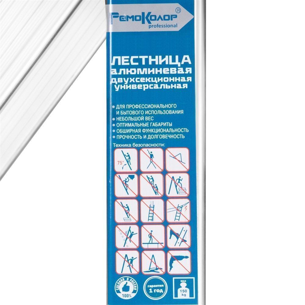Лестница алюминиевая универсальная (Ремоколор) двухсекционная, 6 ступеней, максимальная длина 2,91м (63-2-006) цена - купить в Барнауле, Бийске. Размеры, характеристики, фото в интернет-магазине.