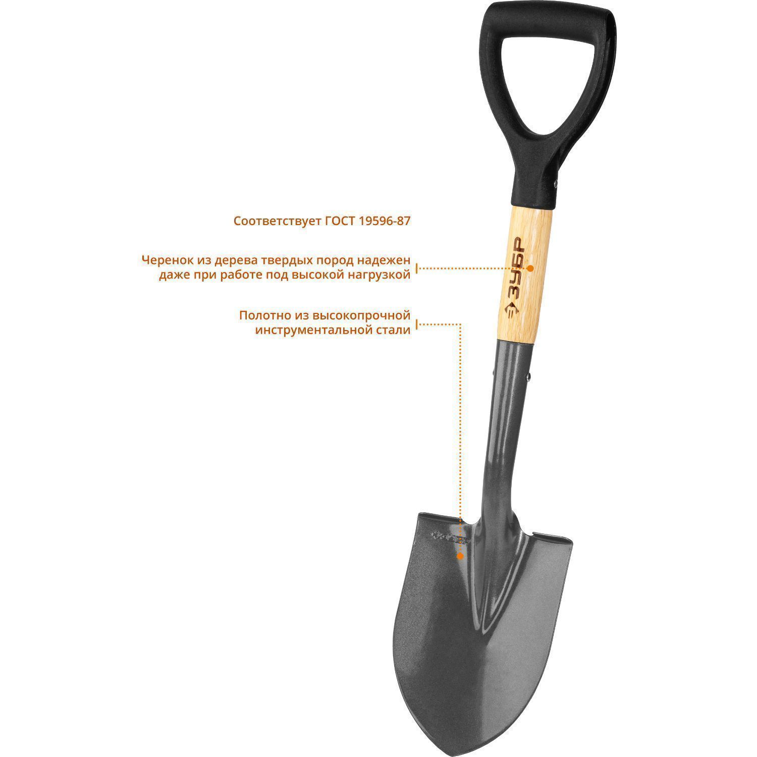 Благодаря укороченному черенку лопата легко размещается в багажнике любого автомобиля.