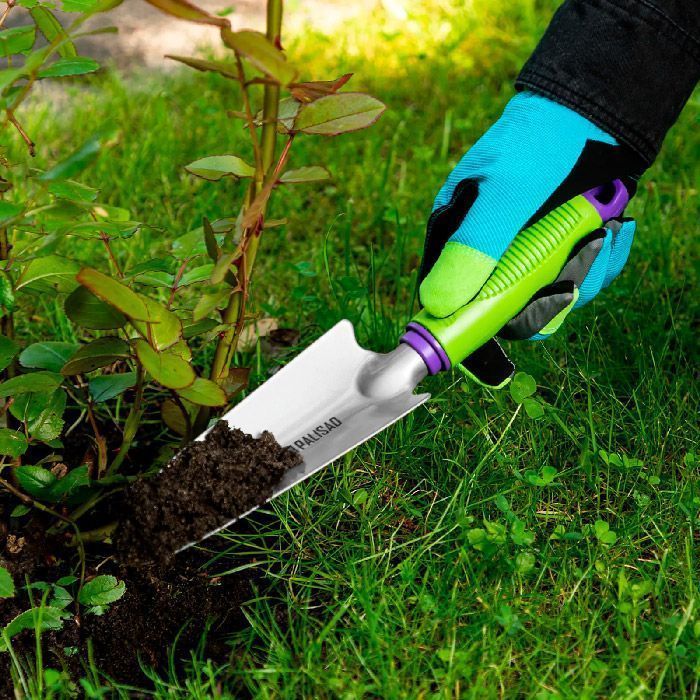 Узкий посадочный совок Palisad CONNECT 63002 размером 62 х 315 мм, стальной, с пластиковой рукояткой, облегчает садовые работы на участке: пересадку рассады и посадку растений. Общая длина составляет 315 мм, а ширина полотна — 62 мм, поэтому инструмент оптимален для работы в узких пространствах: на клумбах и грядках, а также в теплицах.