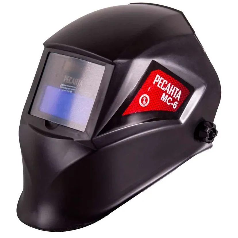 Сварочная маска Ресанта МС-6 предназначена для защиты глаз от видимого, ультрафиолетового и инфракрасного излучения, а также для защиты головы и шеи от попадания искр при сварочных работах. Маска данного типа удобна, поскольку светофильтр автоматически затемняется при зажигании дуги. Такой светофильтр назвали «хамелеоном» из-за способности автоматически затемняться. Степень затемнения можно настраивать с помощью встроенного регулятора в зависимости от модели маски.