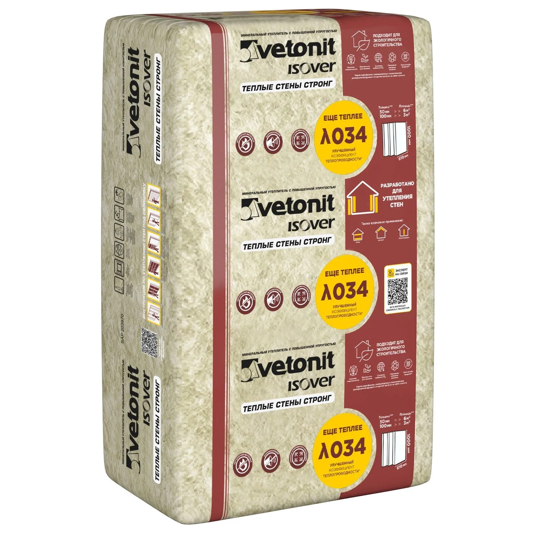Минеральная плита Vetonit теплые стены стронг 1000х610х50 мм, 10 штук в упаковке