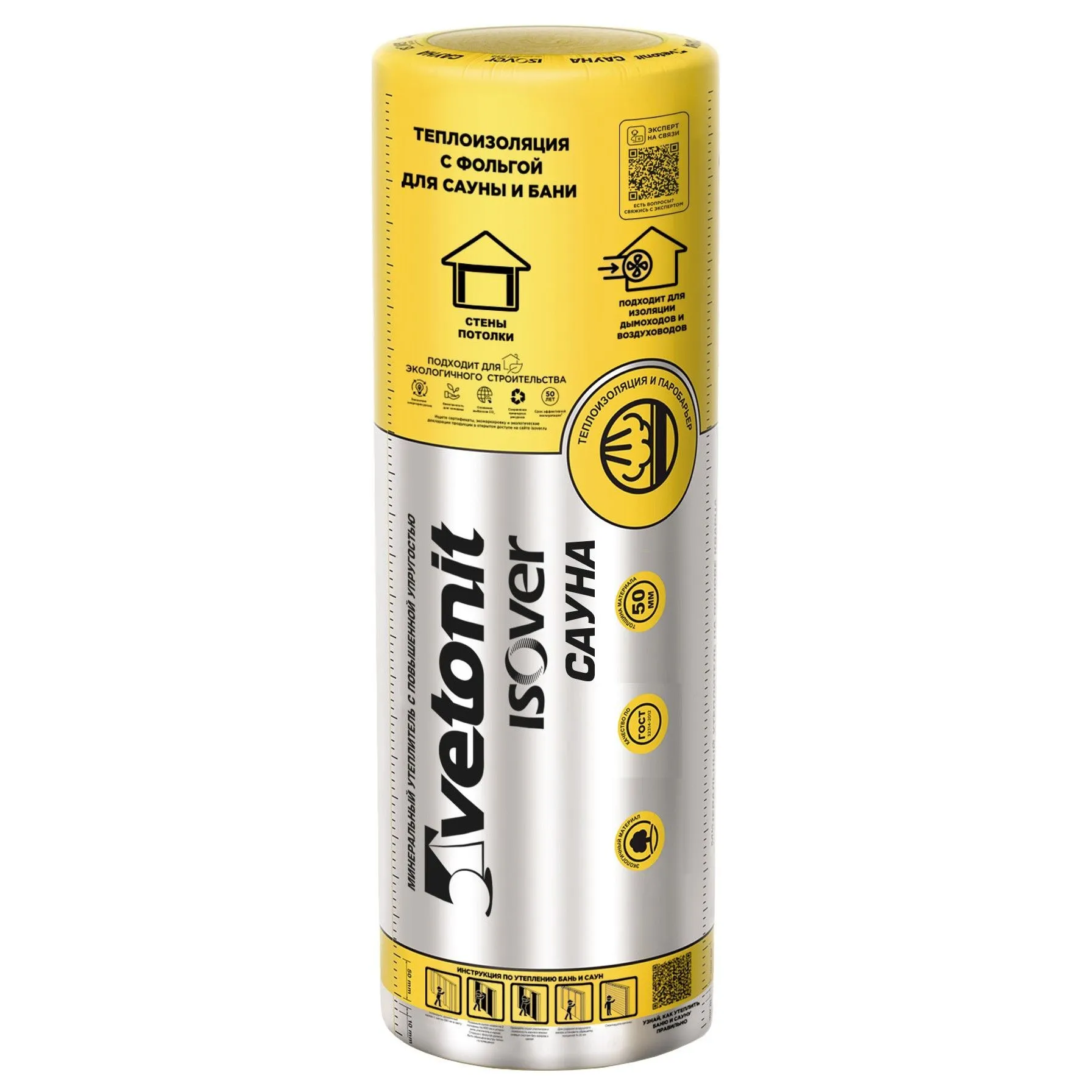 Vetonit Сауна 2 в 1: эффективный утеплитель и паробарьер разработан специально для бани и сауны. Фольгированный слой на минеральной вате дольше сохраняет заданную температуру, позволяет удерживать пар в парилке и предотвращает проникновение сырости. Не требует дополнительного монтажа мембран и пленок.
