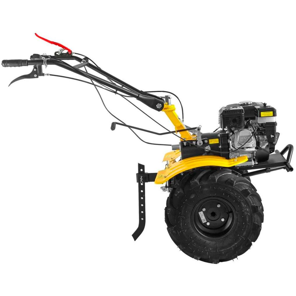 Мотоблок HUTER MK-8000P BF оснащён удобными рукоятками, на которых размещены элементы управления. Безопасность обеспечена наличием широких крыльев, защищающих оператора от попадания земли и посторонних предметов.