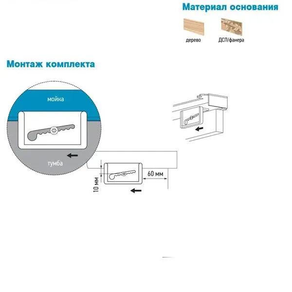 Данное изделие предназначено для крепления накаладной кухонной мойки к тумбе.