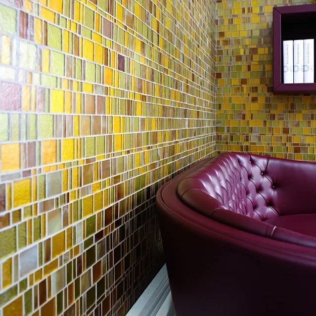 Стеклянная мозайка имеет форму чипов, которая позволяет создавать самые разнообразные композиции для оформления стен и поверхностей. Из плитки можно собирать как простые геометрические узоры, так и сложные мозаичные картины.