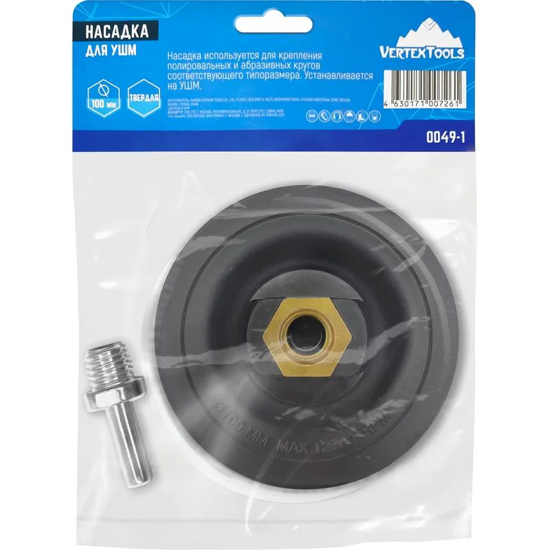 Насадка для УШМ и дрели (Vertextools) твердая с липучкой 100мм (0049-1) цена - купить в Барнауле, Бийске. Размеры, характеристики, фото в интернет-магазине.