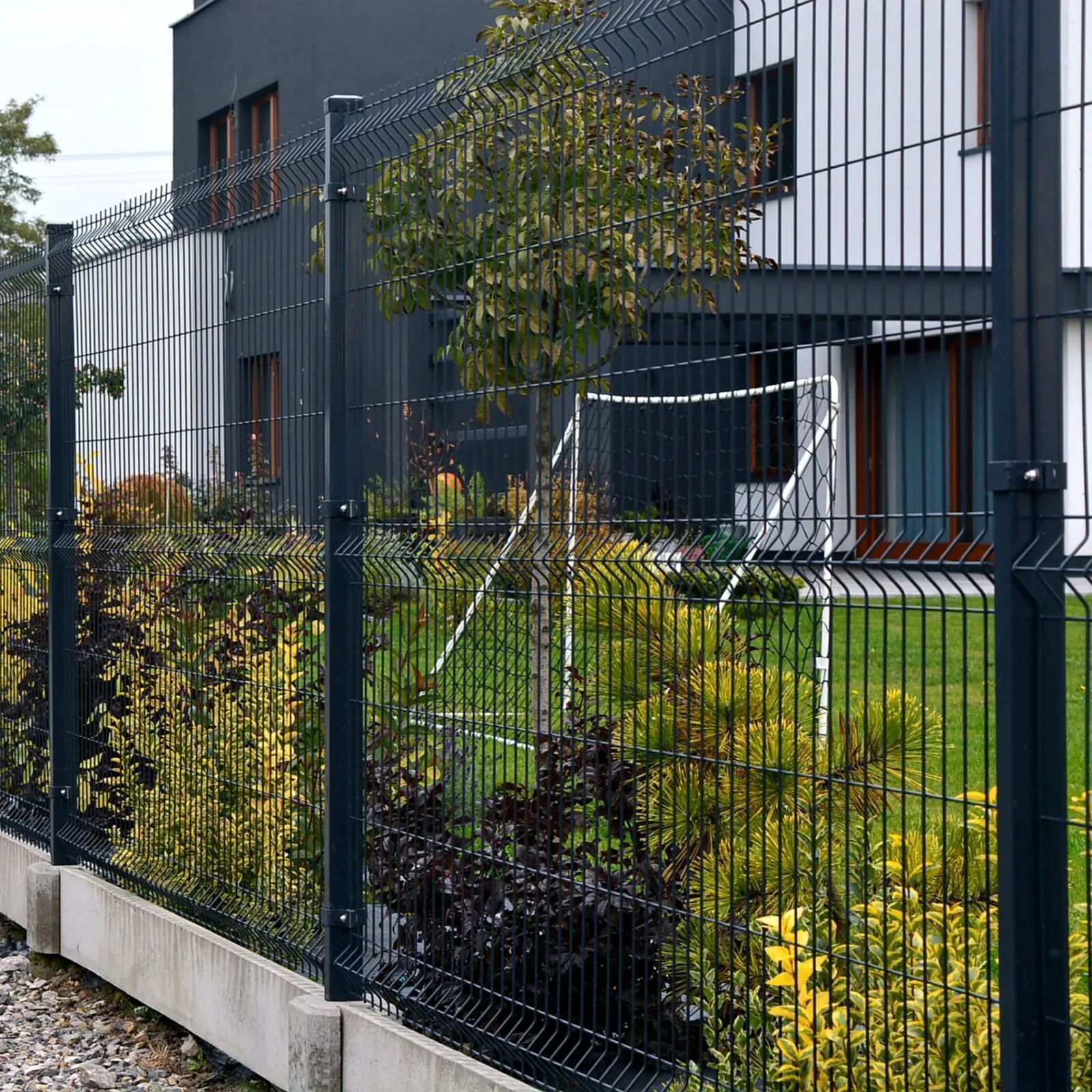 - Сварная сетка не закрывает обзор, и при желании сквозь нее можно наблюдать происходящее за пределами садового участка.
