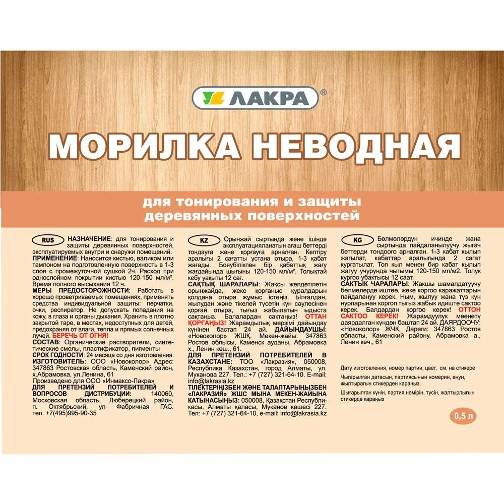 Морилка неводная Лакра мокко 0,5л цена - купить в Барнауле, Бийске. Размеры, характеристики, фото в интернет-магазине.