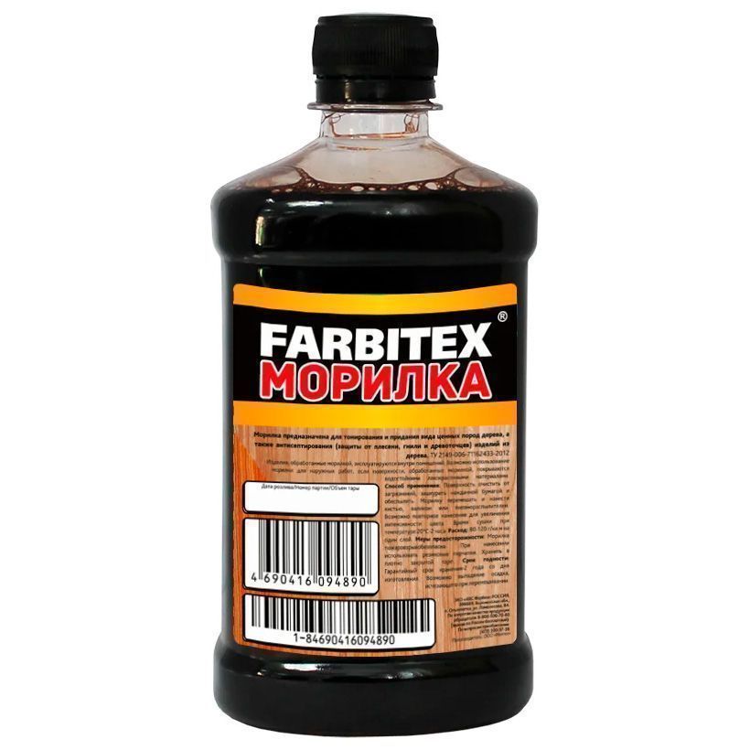 Морилка Farbitex предназначена для тонирования и придания вида ценных пород дерева, а также для защиты от плесени, гнили и древоточцев изделий из дерева, эксплуатирующихся внутри помещений. Возможно использование морилки для наружных работ, если поверхности, обработанные морилкой, покрываются водостойкими лакокрасочными материалами. Экологически чистая. Легко наносится, даже непрофессионалом (кистью, губкой, валиком, распылителем).