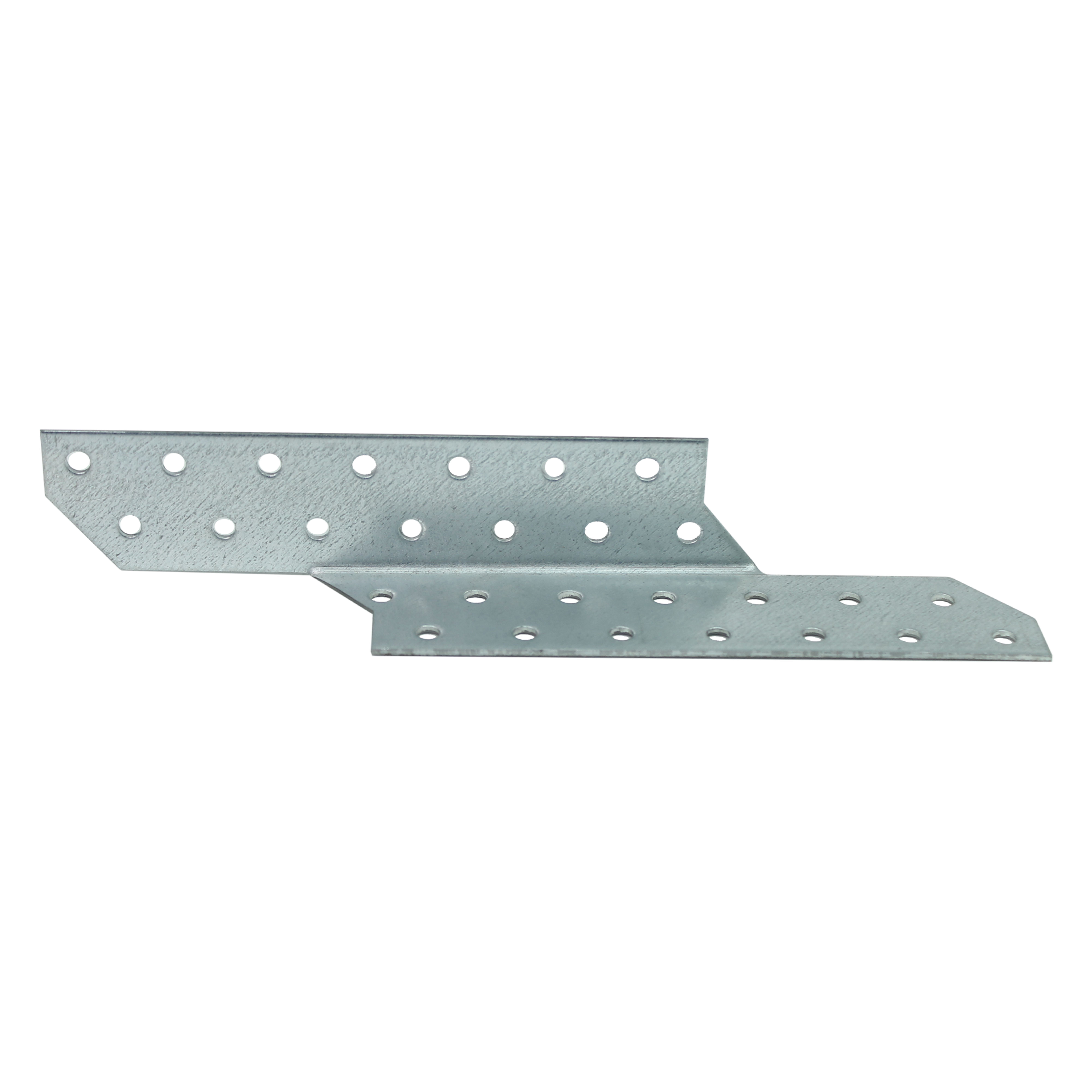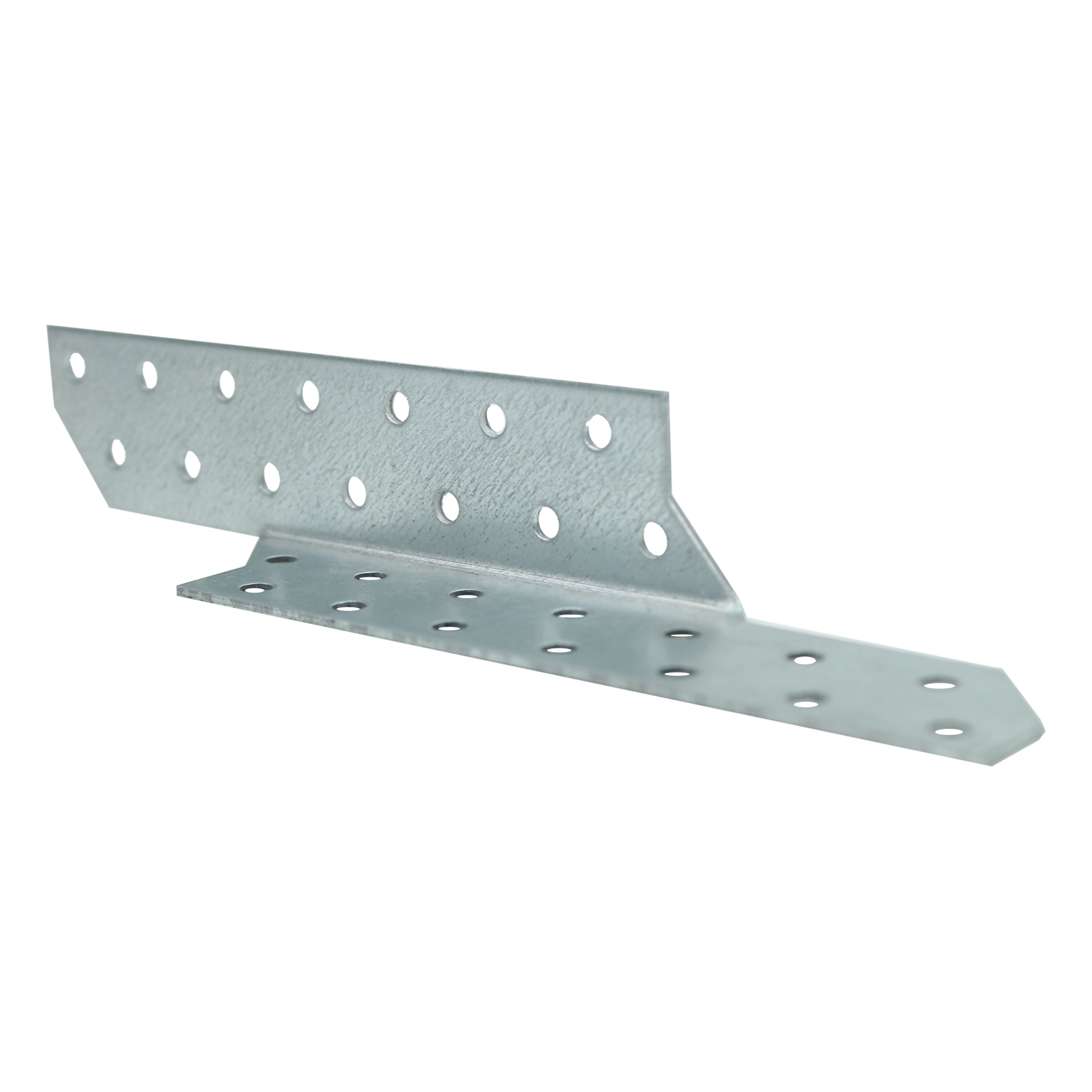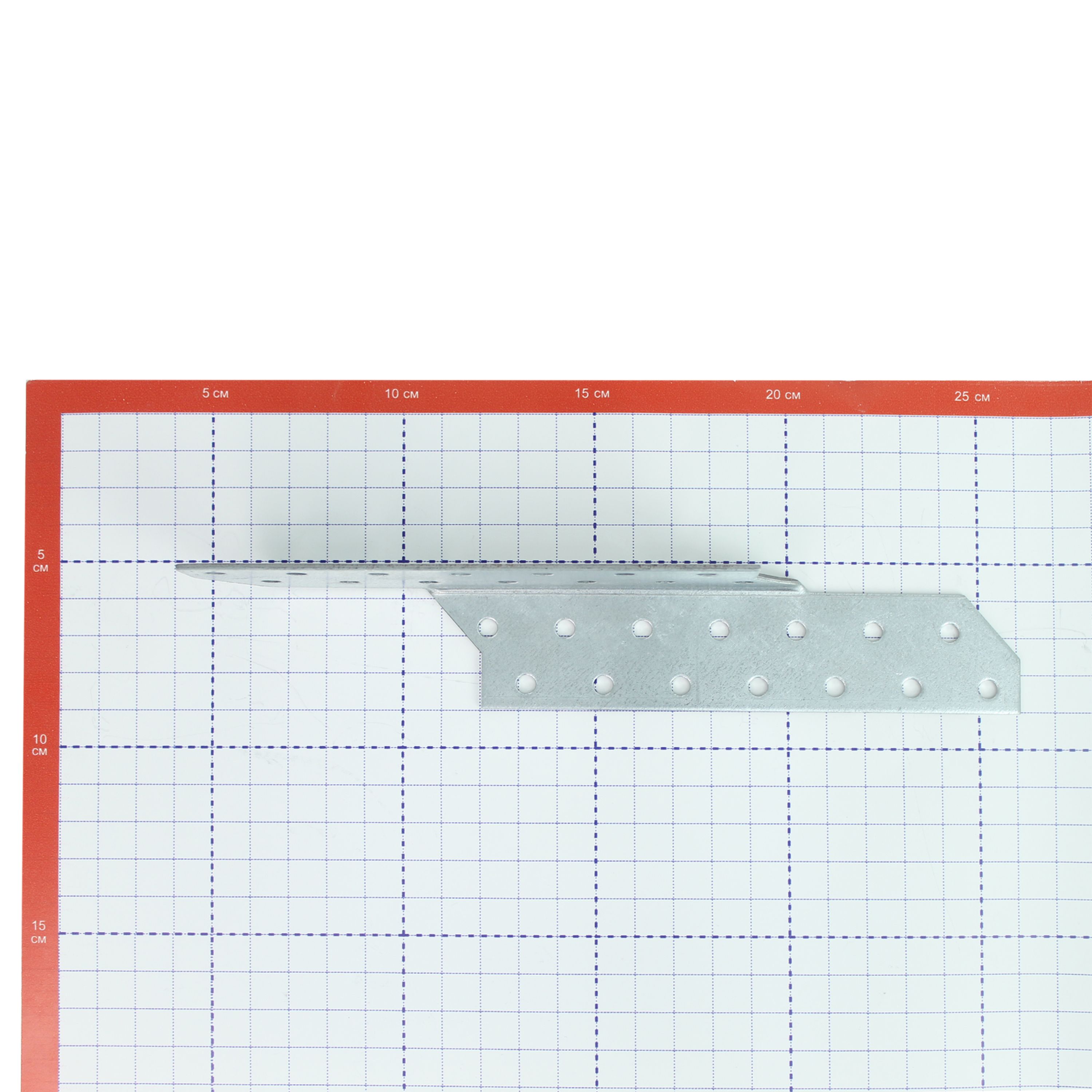 Держатель балки в левостороннем исполнении изготовлен из стали горячего оцинкования толщиной 2 мм. Это уголок специальной формы для соединения элементов домов из дерева, включая несущие конструкции. На обеих сторонах держателя имеется по 10 отверстий под гвозди и шурупы. Позволяет производить монтаж балок под косым углом, что не влияет на несущую способность конструкции.