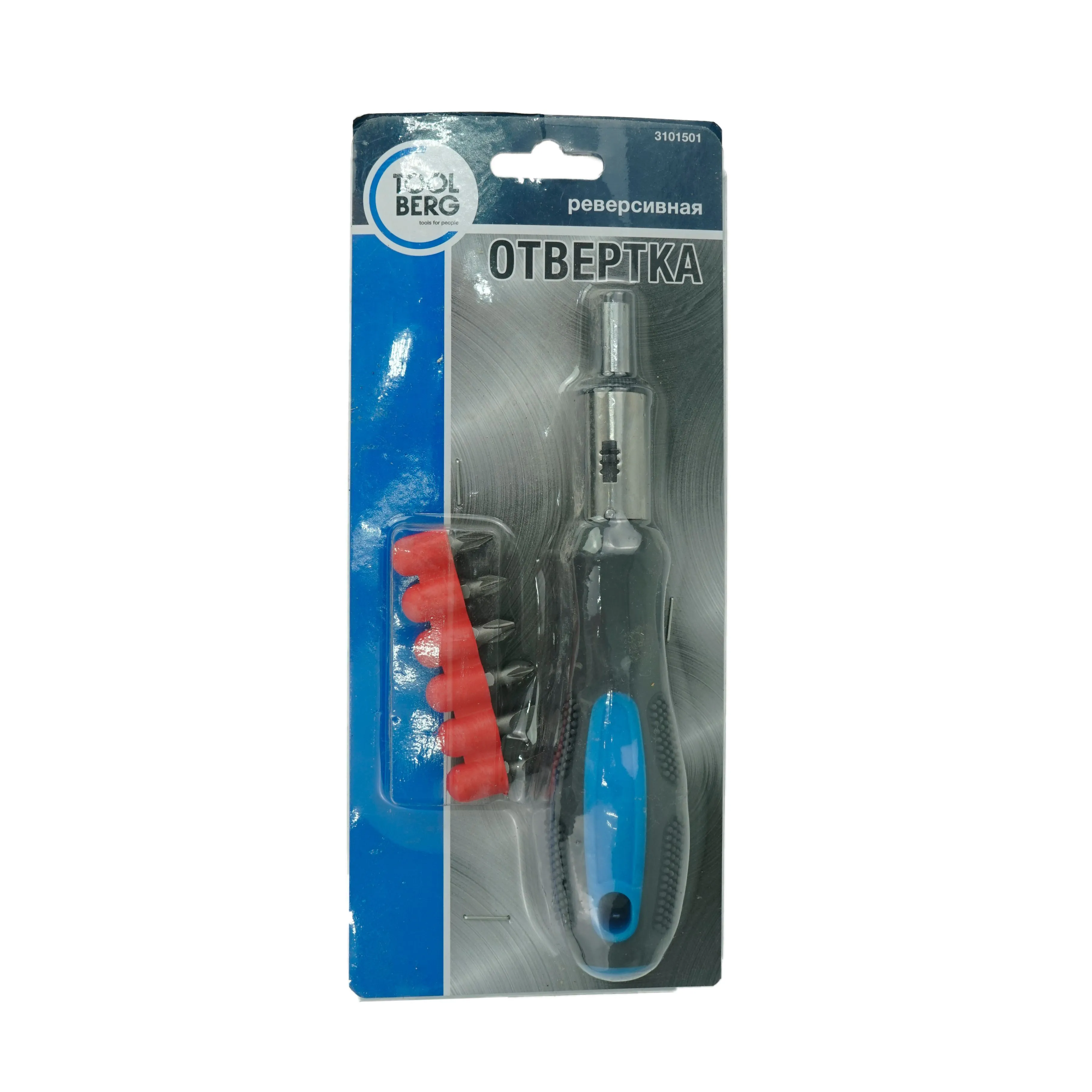 Отвертка (Т4Р) двухкомпонентная ручка, реверсивная, 6 насадок