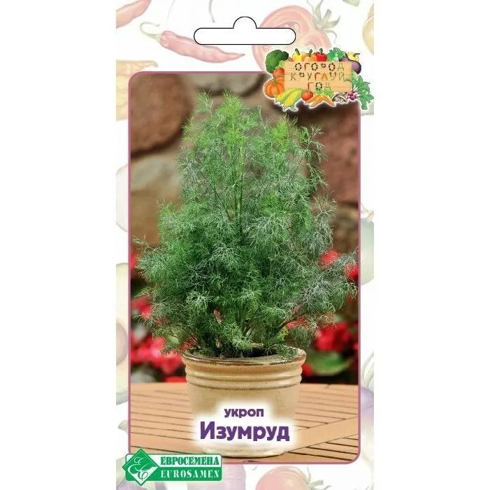 «Изумруд" – среднеспелый сорт укропа, отличающийся привлекательным внешним видом, не разваливается, быстро наращивает вегетативную массу. Масса одного растения 38-40 г, особенность сорта в ярко-зеленых листьях с глянцевым блеском.