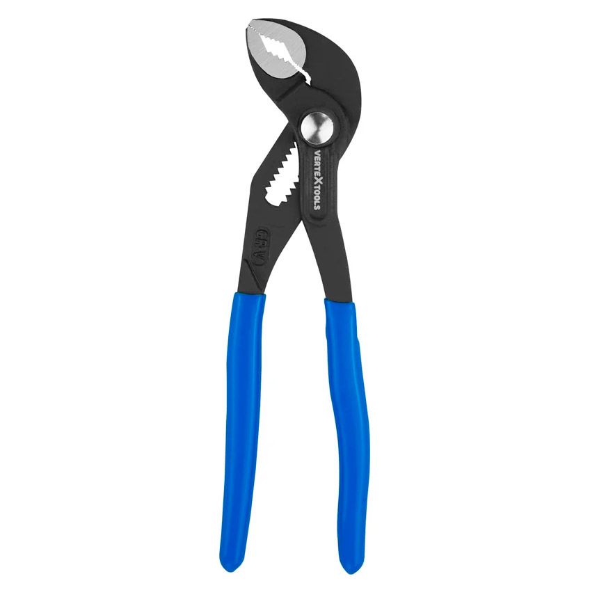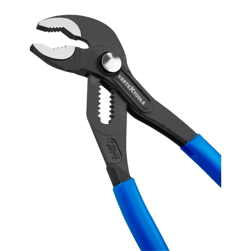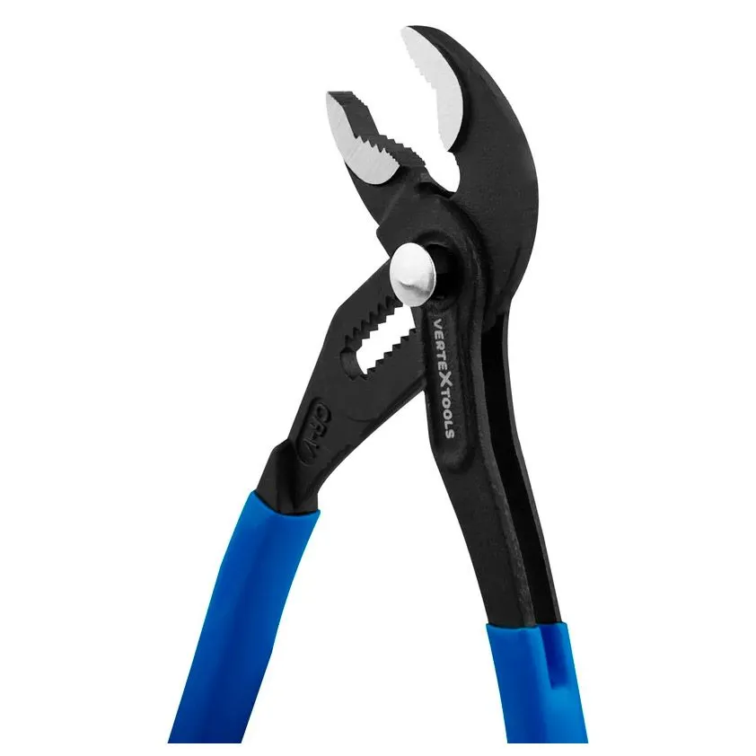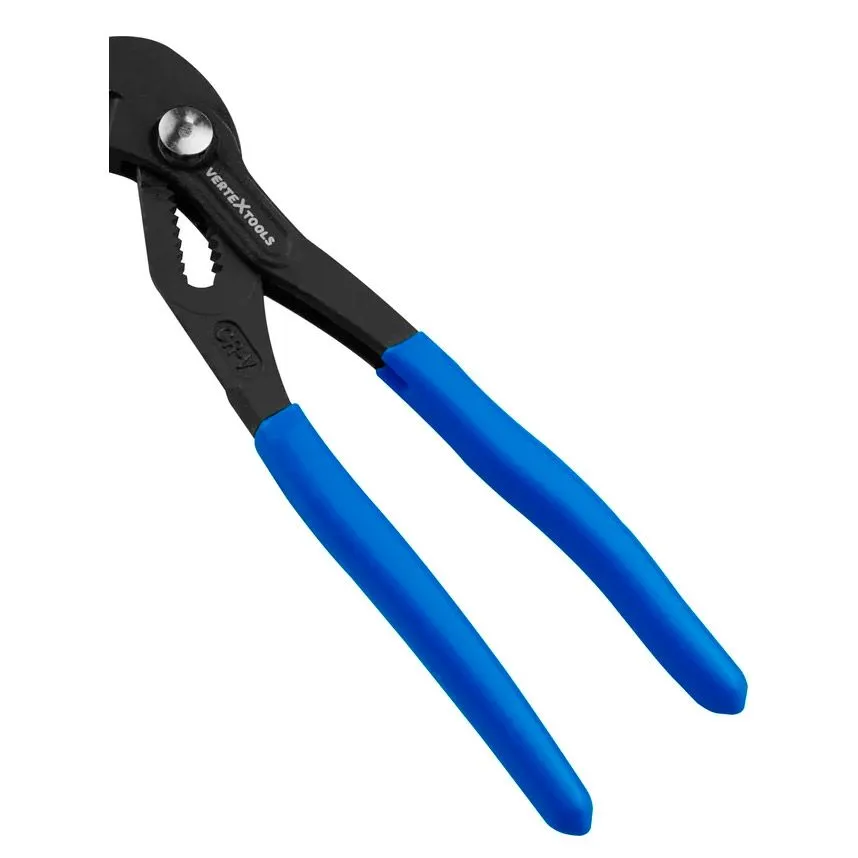 Переставные клещи vertextools изготовлены из высококачественной хромированной стали. Материалом изготовления рукояток служит нескользкий пластик с виниловым покрытием.