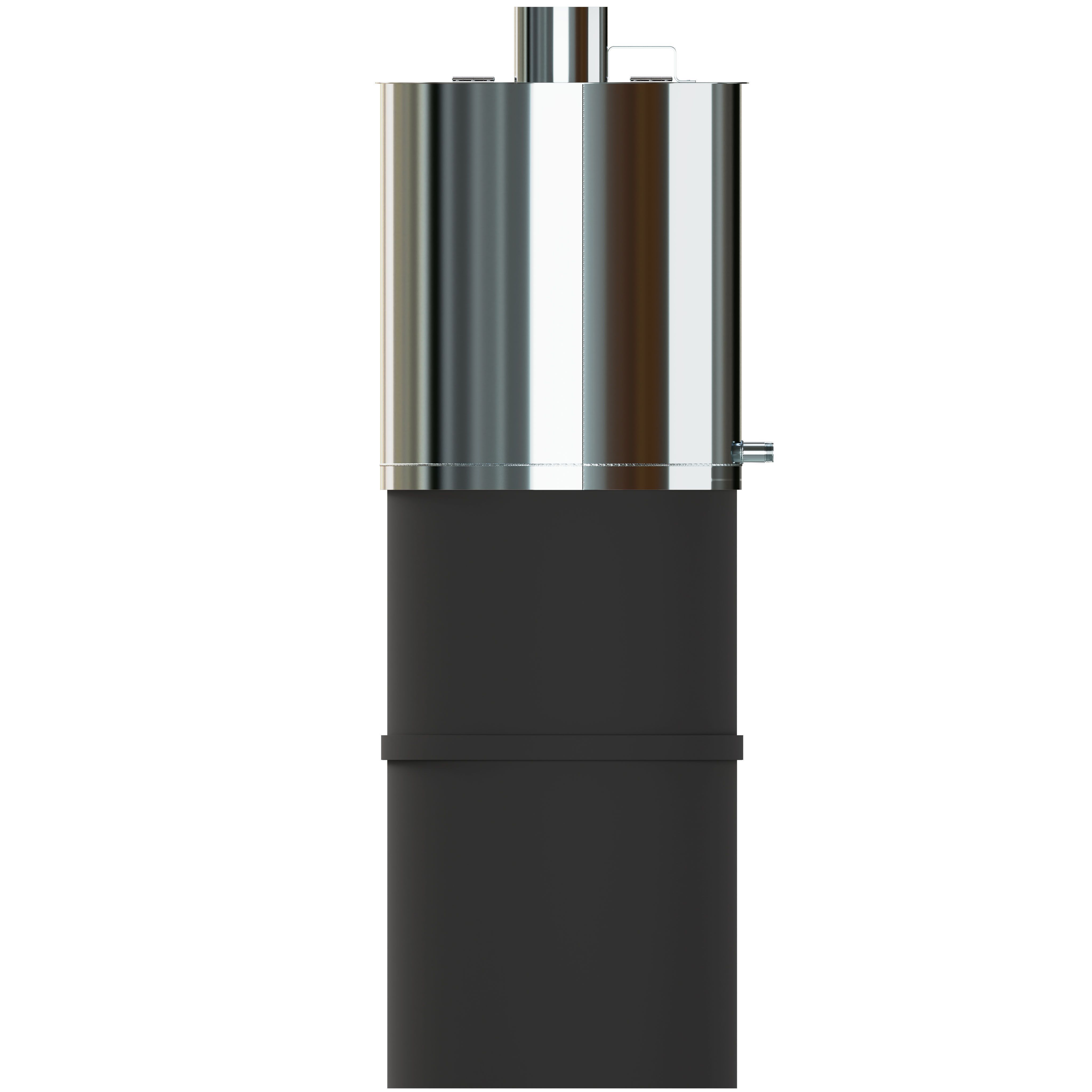 Банная печь трехкомпонентная, изготовлена из трубы 426*6…8, БЕЗ ВЫНОСНОЙ ТОПКОЙ . Водогрейный бак на 70 литров из НЕРЖАВЕЮЩЕЙ СТАЛИ. Топливо – дрова, уголь.