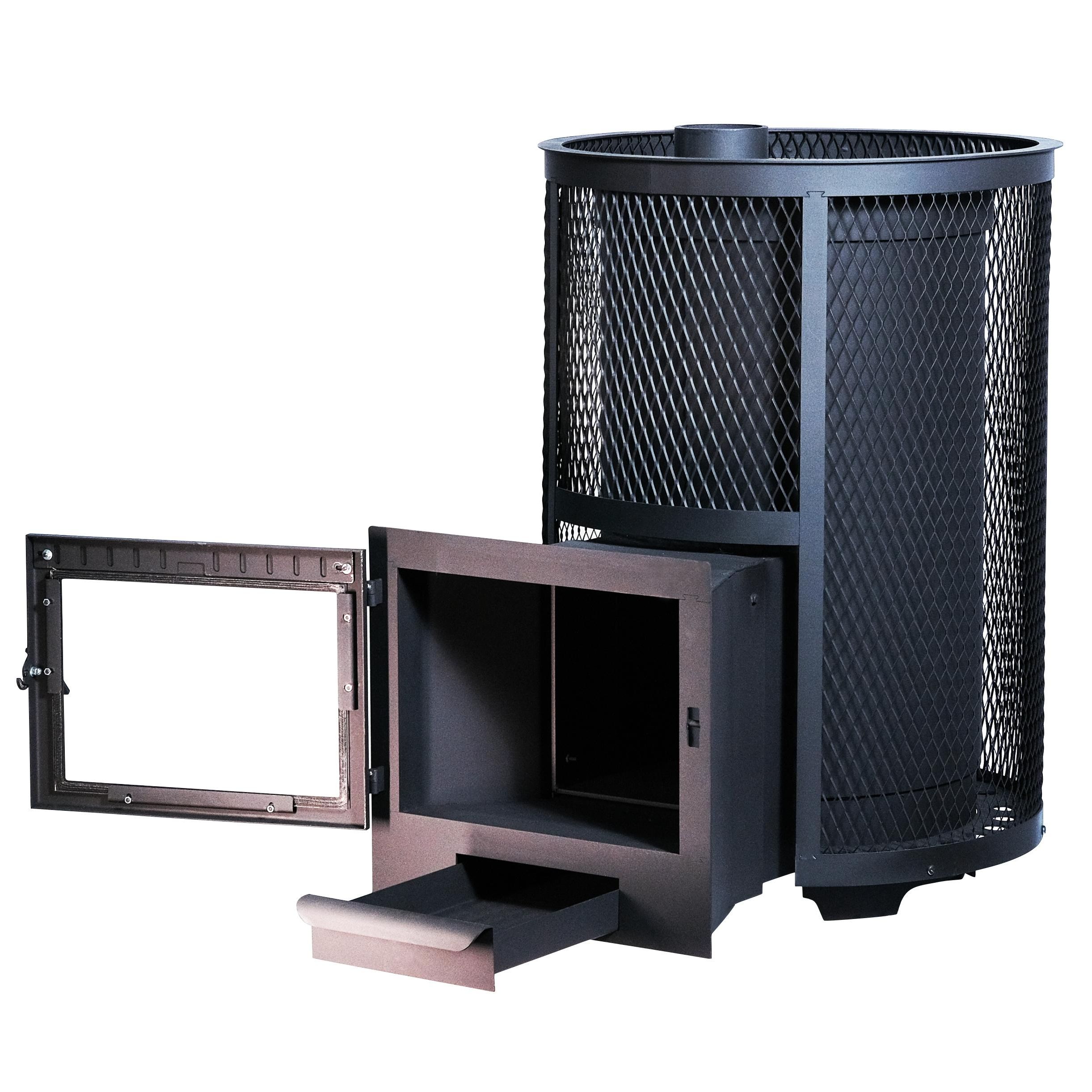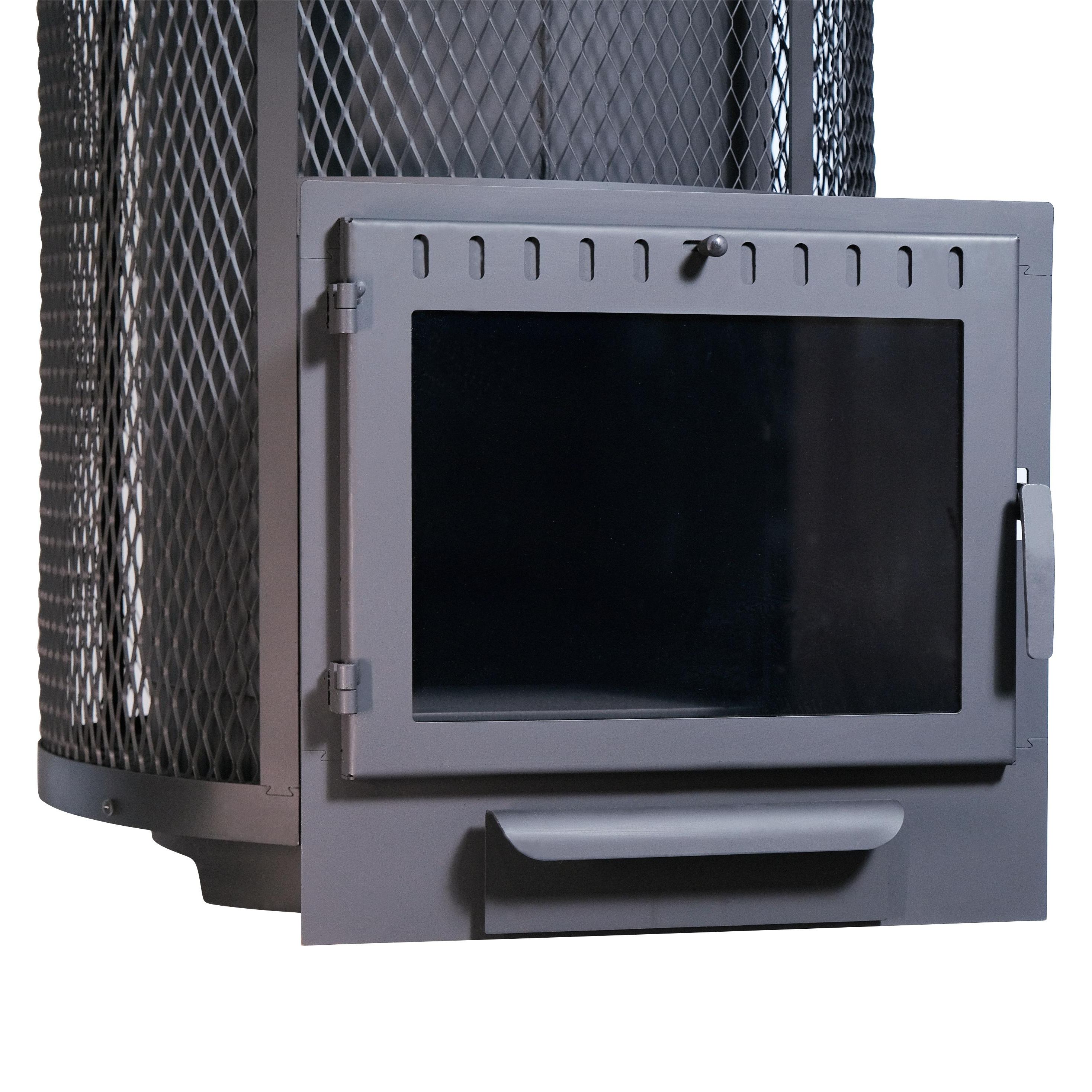 Банная печь Дубрава представляет собой стальную конструкцию, выполненную в круглой форме, которая позволяет максимально эффективно нагревать парильное и смежные помещения в бане. Отличительной особенностью данной модели является ее уникальная закрытая каменка, которая равномерно нагревается за счет использования винтовой системы дымохода. Внутри каменки нагнетается высокая температура, позволяющая с высокой скоростью производить нагрев имеющихся камней и удерживать ее на протяжении длительного периода времени. Печь выполнена из стали толщиной 6 мм и облицована конвекционным металлическим кожухом, защищающим от инфракрасного излучения.
