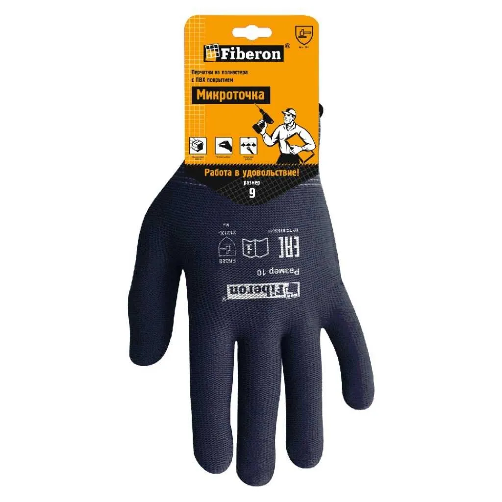 Перчатки (Фиберон) Микроточка, полиэстер, ПВХ точка для защиты рук от мелких механических повреждений и общих производственных загрязнений.