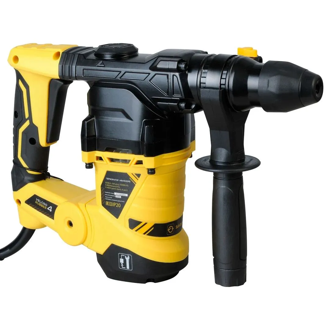 Hanskonner HRH1532RE – универсальный трехрежимный перфоратор с типом патрона SDS Plus. Являясь представителем семейства перфораторов вертикальной компоновки, инструмент воплощает в себе все основные, присущие этому типу достоинства – возможность установки мощного двигателя при сохранении относительно компактных габаритных размеров самого устройства, нейтральный центр тяжести, способность выдерживать повышенные нагрузки.