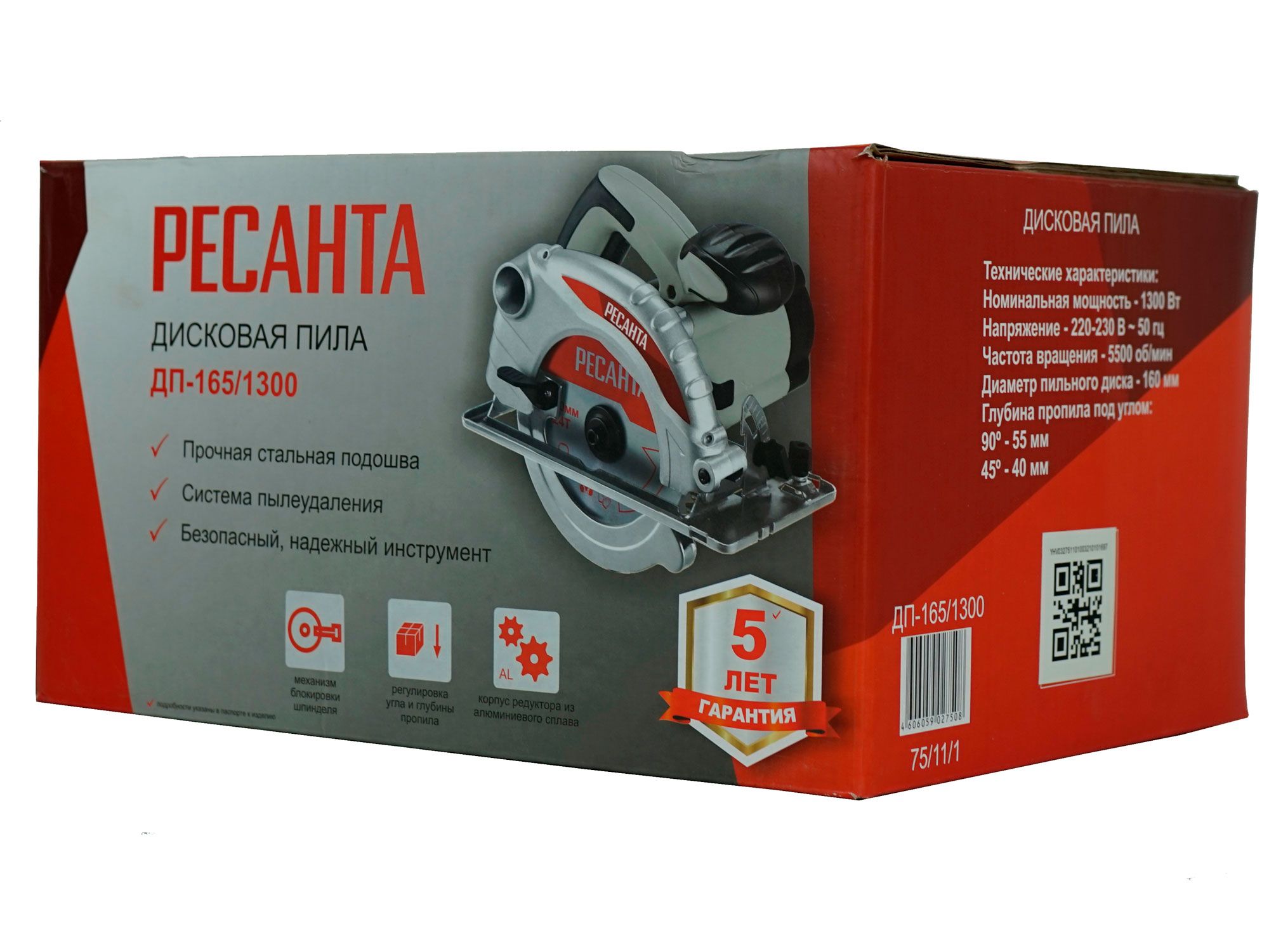 Пила дисковая (Ресанта) ДП-165/1300, d165х20мм, 1300Вт цена - купить в Барнауле, Бийске. Размеры, характеристики, фото в интернет-магазине.