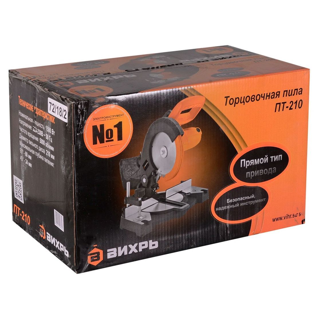 Модель Вихрь ПТ-210 является торцовочной пилой с электроприводом от сети и используется для распила заготовок из дерева и полимеров под различными углами. При этом функционал инструмента можно расширить путём монтажа специальных пильных кругов, которые позволяют распиливать тонкие профили, а также трубы из металла или пластика. Мощность торцовочной пилы составляет 1.5 кВт. Скорость вращения – 5000 об/мин. Диаметр используемого диска – 210 мм. Вид привода – прямой.