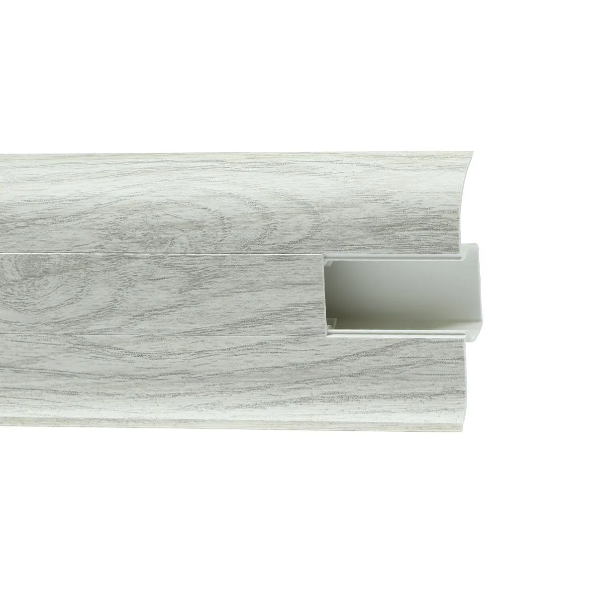 -Мягкий край обеспечивает плотное прилегание плинтуса к поверхностям, а с помощью кабель-канала возможно незаметно проложить кабельную продукцию.
