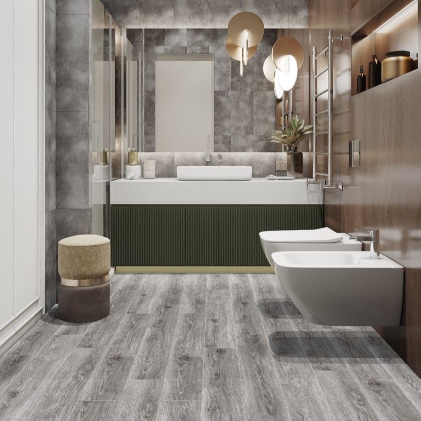 - Имеет специальное противоскользящее покрытие, которое делает ламинат еще более подходящий для отделки ванной, кухни или детской комнаты.