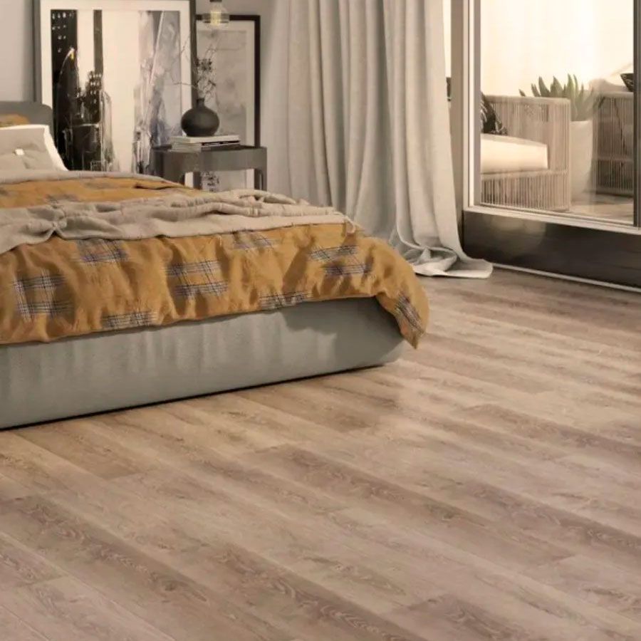 - Серые и коричневые оттенки и V-образная фаска создают ощущение натурального пола из дерева, а также не требуют особого ухода.