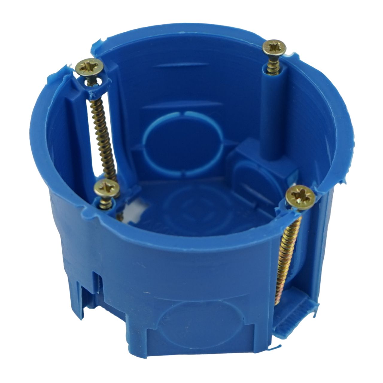 Коробка изготовлена из долговечного материала с подготовленными выводами, которые выламываются в зависимости от схемы подключения. Коробка защищает контакты от попадания пыли или мелкого мусора в полой стене.