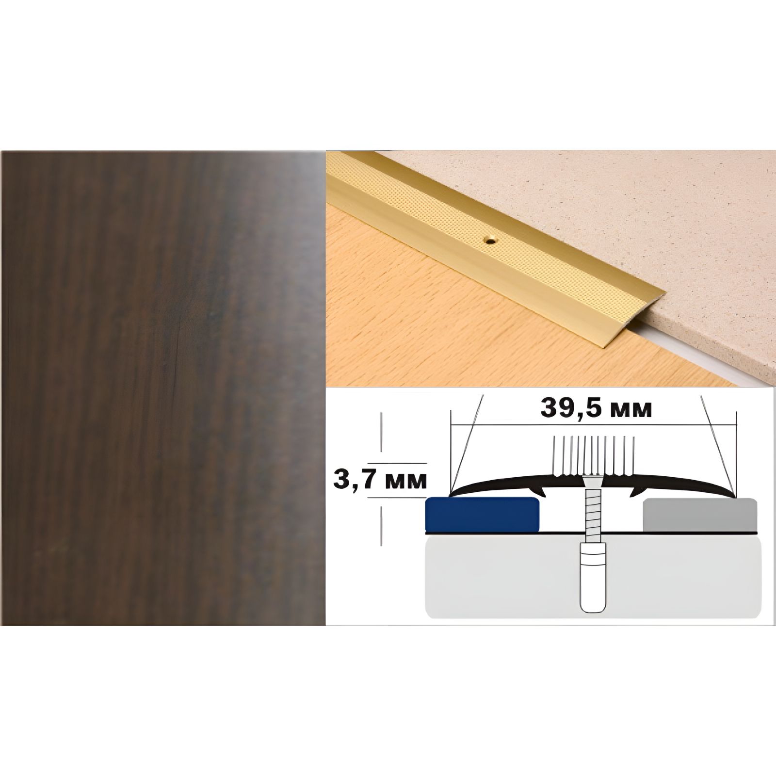 Предназначен для перекрытия стыков напольных покрытий, находящихся на одном уровне.