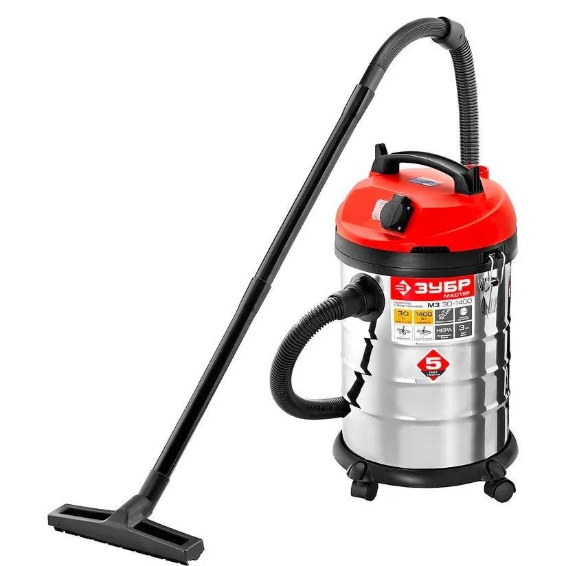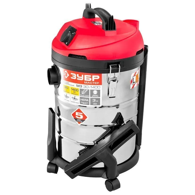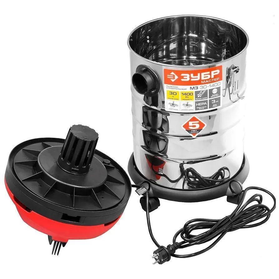 Строительный пылесос ЗУБР МАСТЕР М3-30 ПУ-30-1400 М3 используется для уборки строительных площадок и производственных помещений. Он оснащен встроенной розеткой, к которой можно подключить электроинструмент мощностью до 2000 Вт. Корпус бака выполнен из нержавеющей стали, благодаря чему устойчив к коррозии и имеет долгий срок службы. Функция выдувания позволит избавиться от пыли в труднодоступных местах.