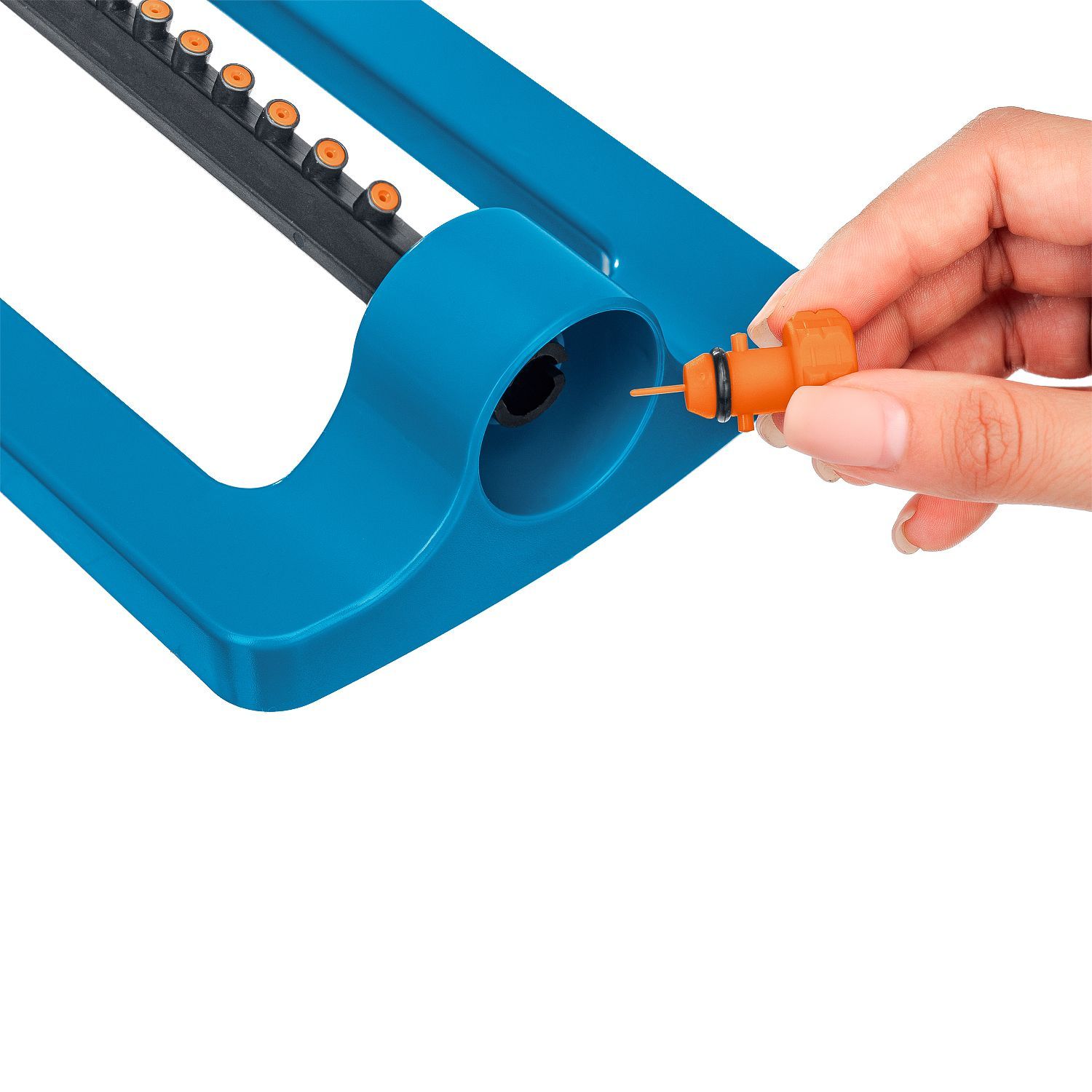 - 16 форсунок и плавность хода осциллирующего блока обеспечивают равномерный и качественный полив заданного участка.