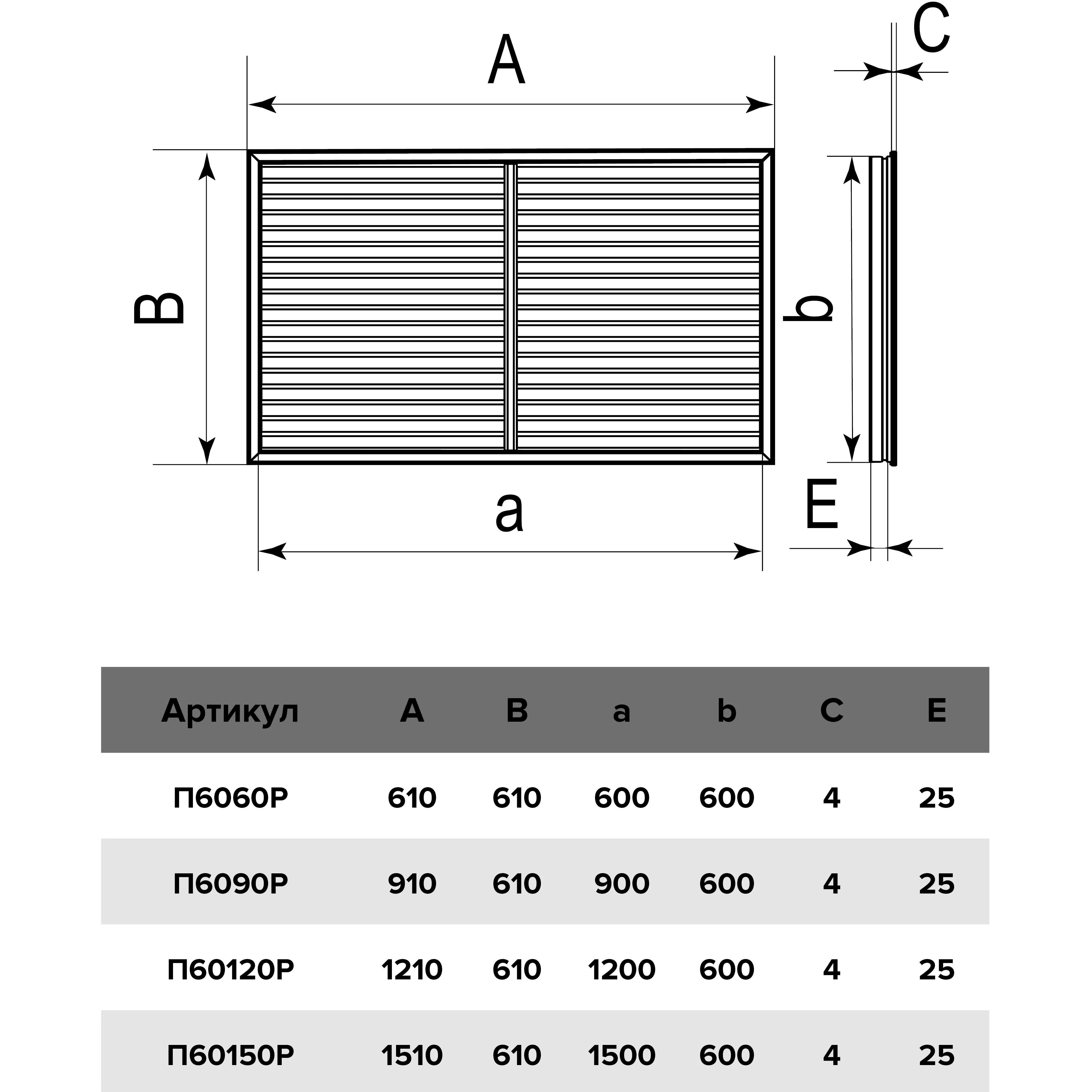 Решетка сделана из жесткого ПВХ, легко моется, долговечена, обладает высокой термостойкостью и при эксплуатации не выделяет запахов, не токсична.