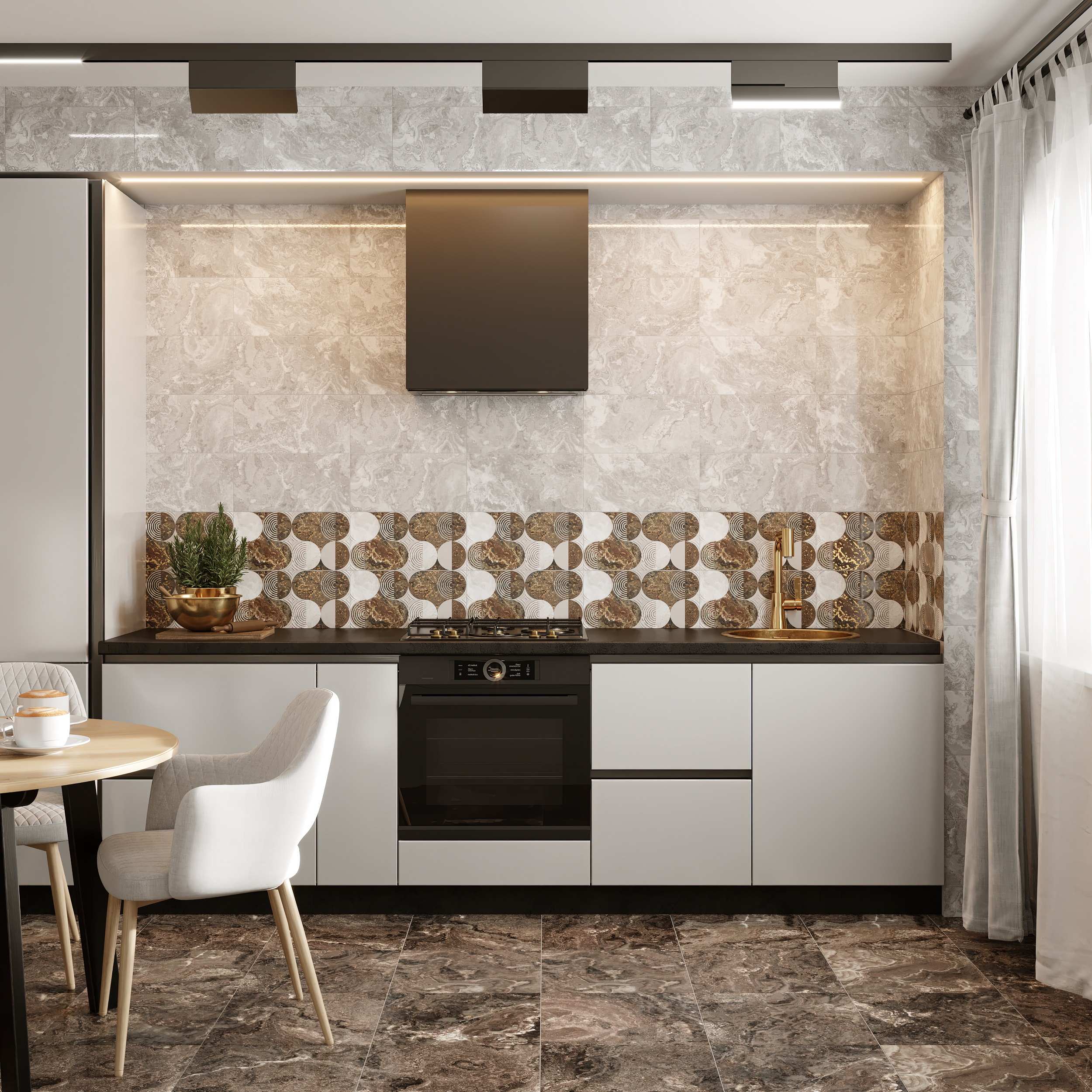Крупноформатная керамическая плитка Ричмонд торговой марки Axima приковывает внимание потрясающей имитацией выразительного рисунка гранита Golden Persa. Фоновая плитка для стен производится не только в естественных для этой породы коричнево-бежевых тонах, но и в фантазийно-синем исполнении. Эффектные декоративные вставки с незаконченными окружностями привнесут хай-тек акцент в дизайн вашего помещения. Напольная плитка коллекции Ричмонд — матовая, она выполнена в двух цветовых решениях: коричневом и бежевом.