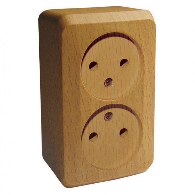 Розетка двойная накладная Олимп (UNIVersal) 16А, без заземления, сосна (5560858)
