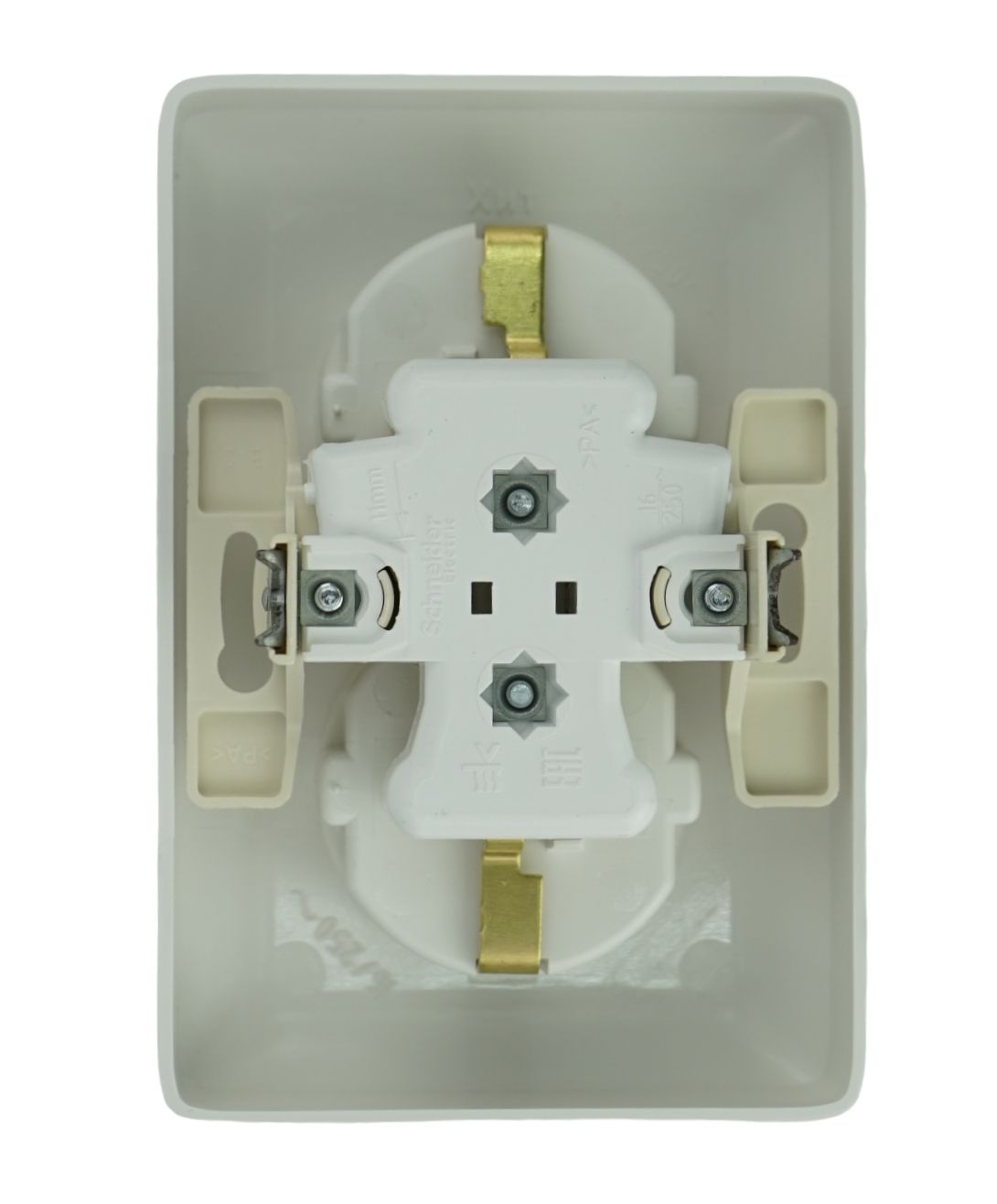 - Усиленные прямые монтажные лапки для лучшей фиксации механизма в монтажной коробке.