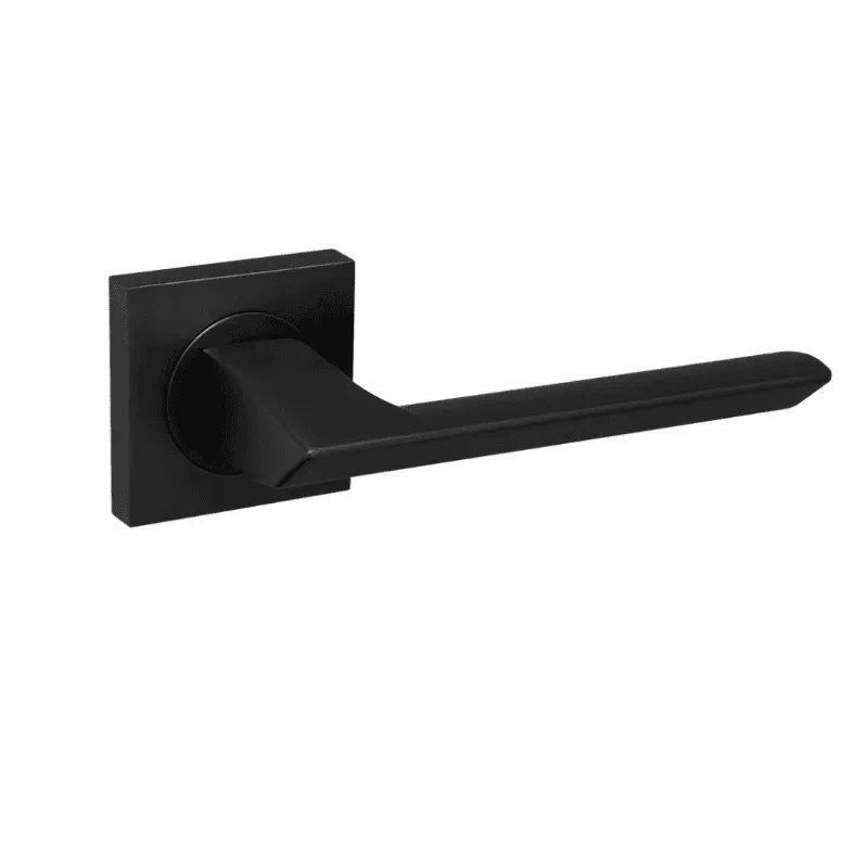 Алюминиевая дверная ручка на квадратной розетке — современное решение для экономичной комплектации дверей квартиры.