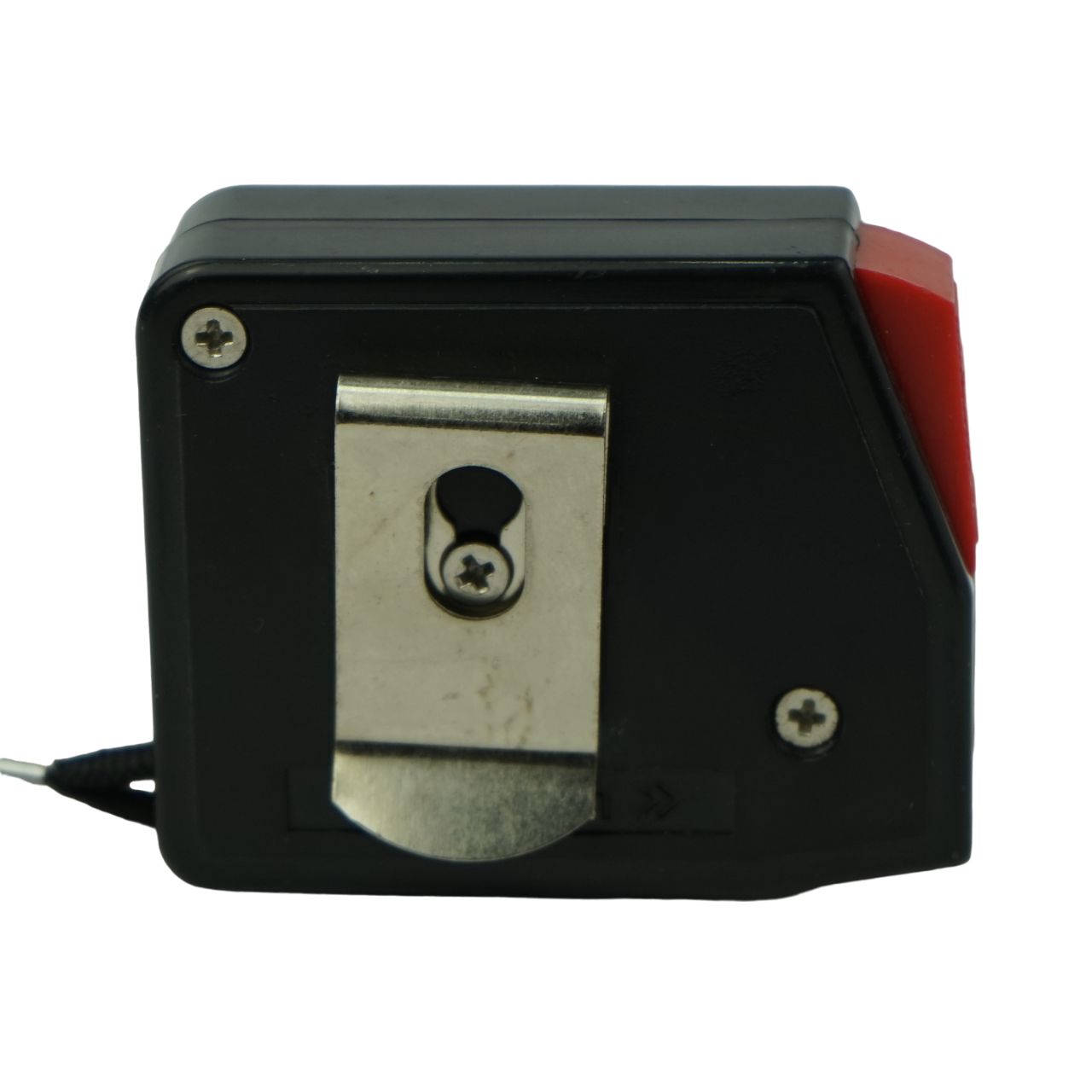 Рулетка удобно крепится на поясе при помощи специального зажима, оснащена ремешком для переноски на запястье.