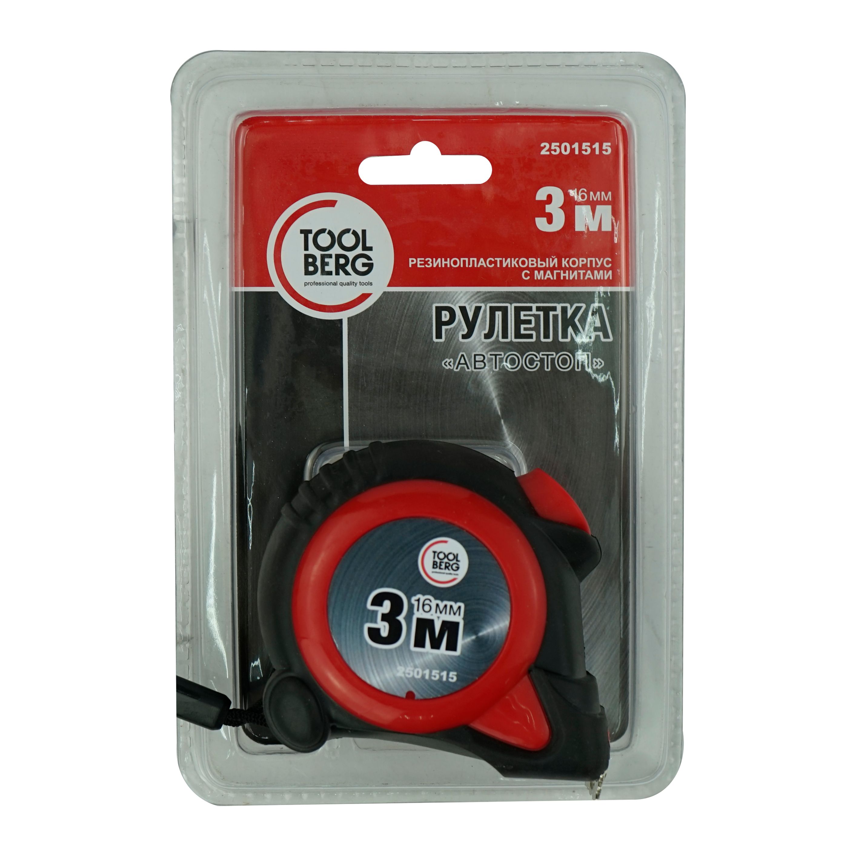 Рулетка (ПиКьюТулс) автостоп, с магнитами резино-пластиковый корпус,3м х 16мм.