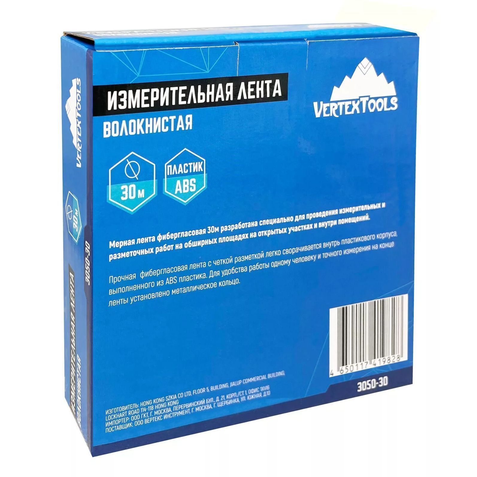 Лента мерная Vertextools выполнена из фибергласса. Деления метрической шкалы – 1 мм.