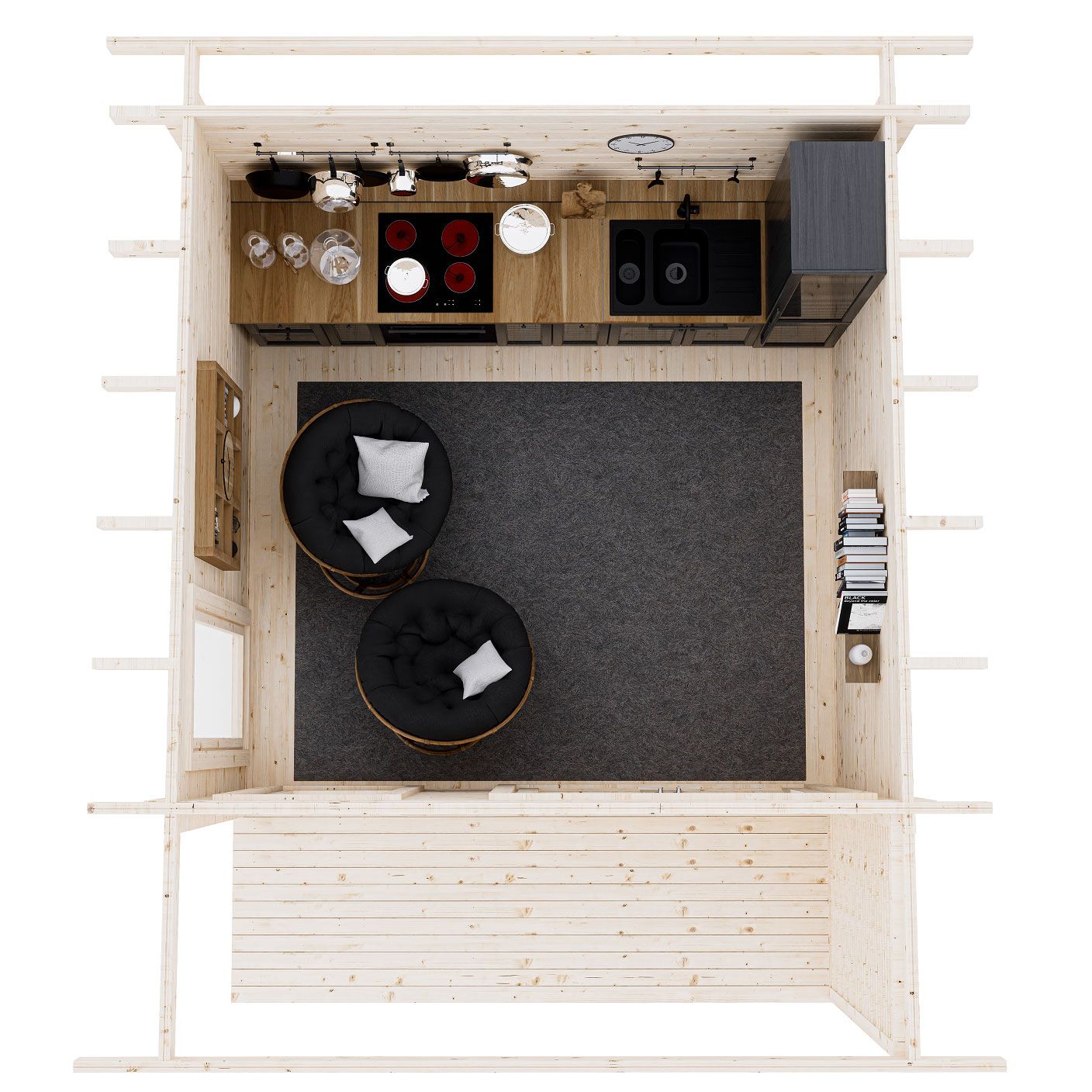 Современный дизайн и минималистичная форма — возможность со вкусом осовременить или дополнить любое пространство. Внушительная площадь 10,3 м² при компактном размере 3,5×3,5 м позволяет обыграть пространство как угодно. Люди творчества увидят здесь великолепную студию с панорамными окнами, семья — отличную гостевую, игровую или столовую. Входную зону можно дополнить террасой.