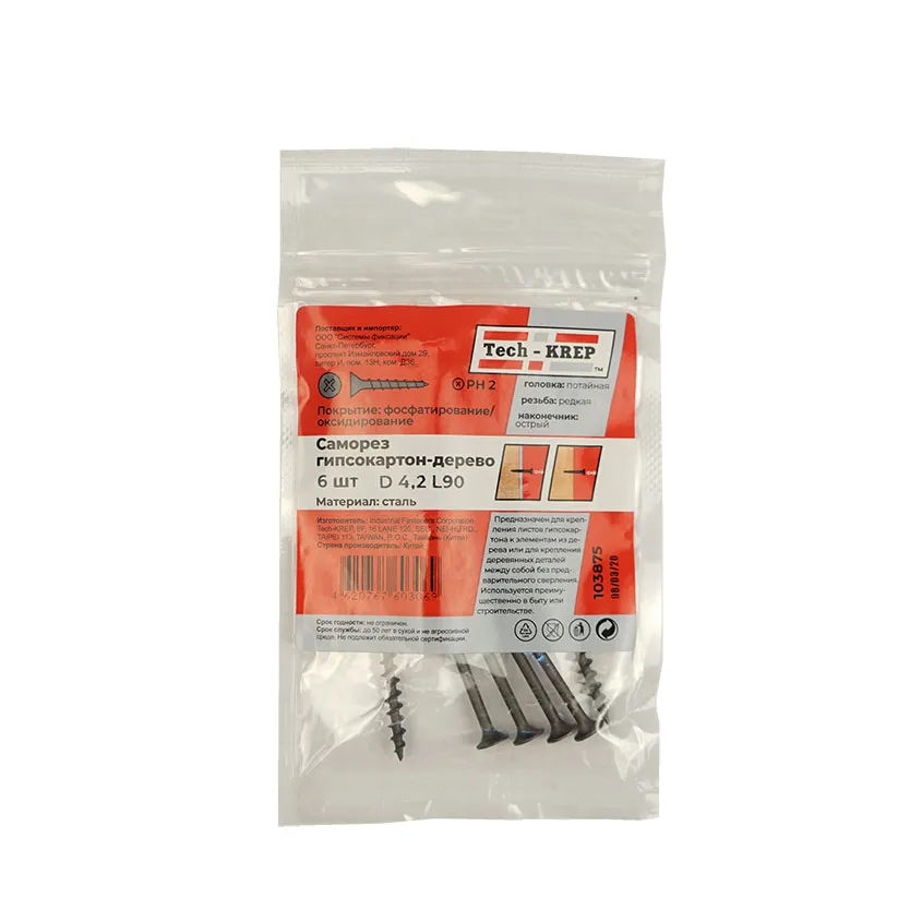 Для крепления легких конструкций (ГКЛ, ДСП, дерева, тонколистового металла) к деревянной обрешетке без предварительного сверления.