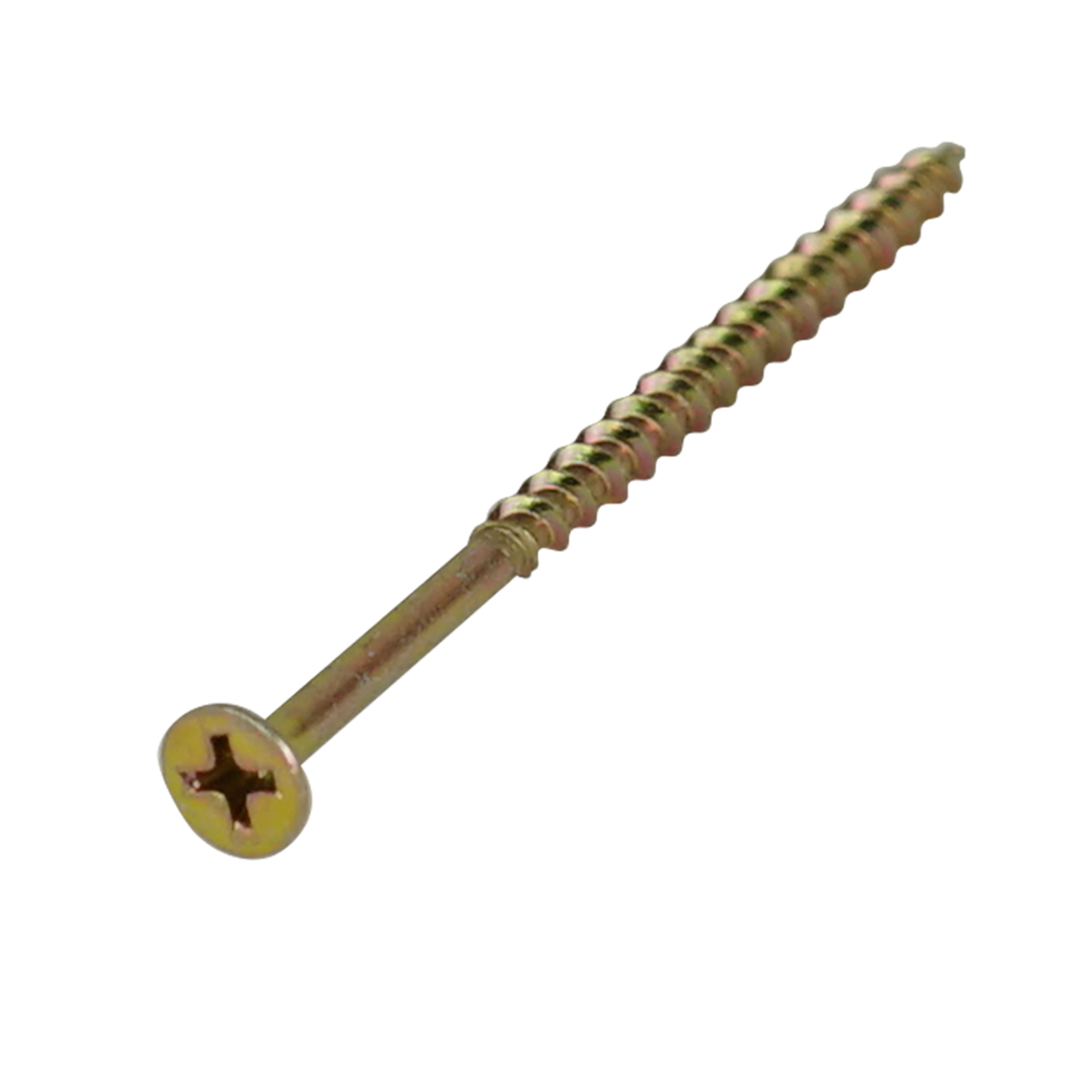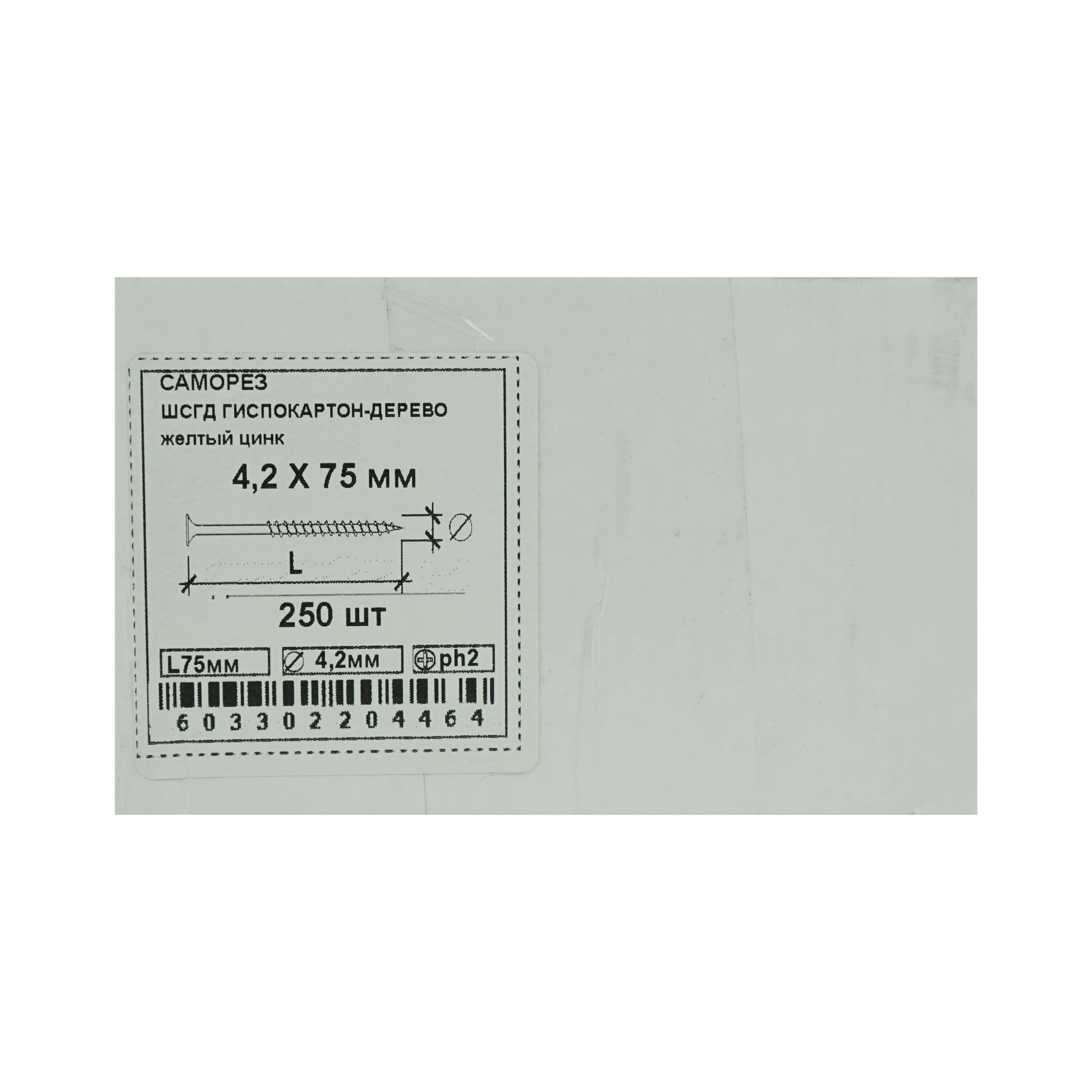 Саморез ШСГД 4,2х75мм - стальной крепежный элемент, фосфатированный, с острым наконечником, потайной головкой, крестообразной формой шлица Ph2, крупной резьбой, желтого цвета