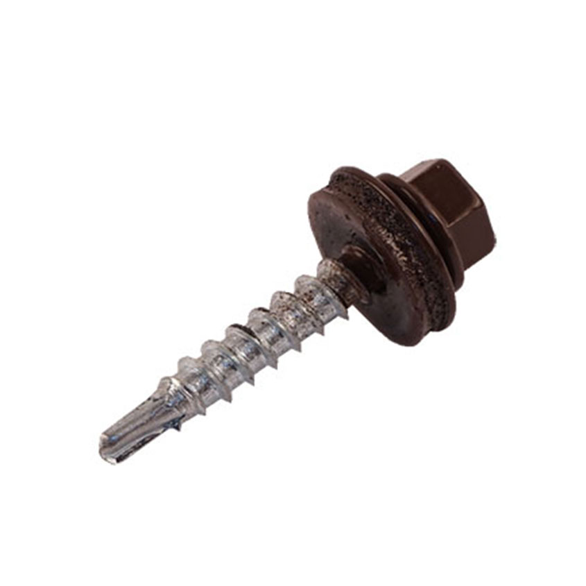 Саморезы кровельные RAL-8017 шок-коричневый 4,8х29мм - стальные саморезы с шестигранной головкой и со сверловидным наконечником, укомплектованные шайбой с резиновой прокладкой. Производятся из оцинкованной стали, имеют полную резьбу.