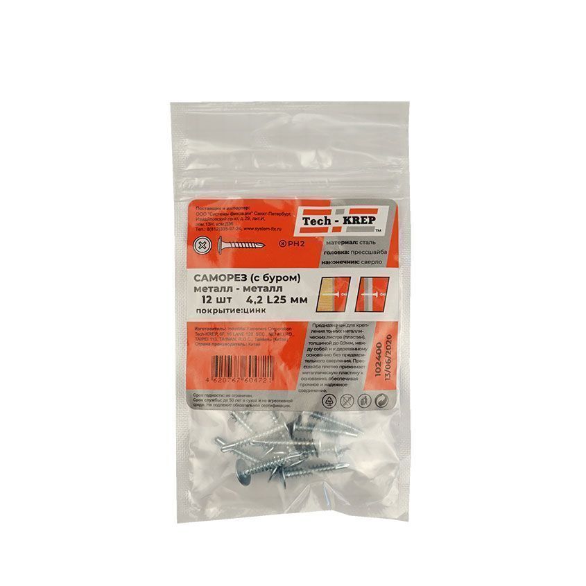 Саморез ШСММ со сверлом 4,2х25мм - стальной крепежный элемент, с галетной головкой, с крестообразной формой шлица Ph2, частой резьбой, со сверлом.