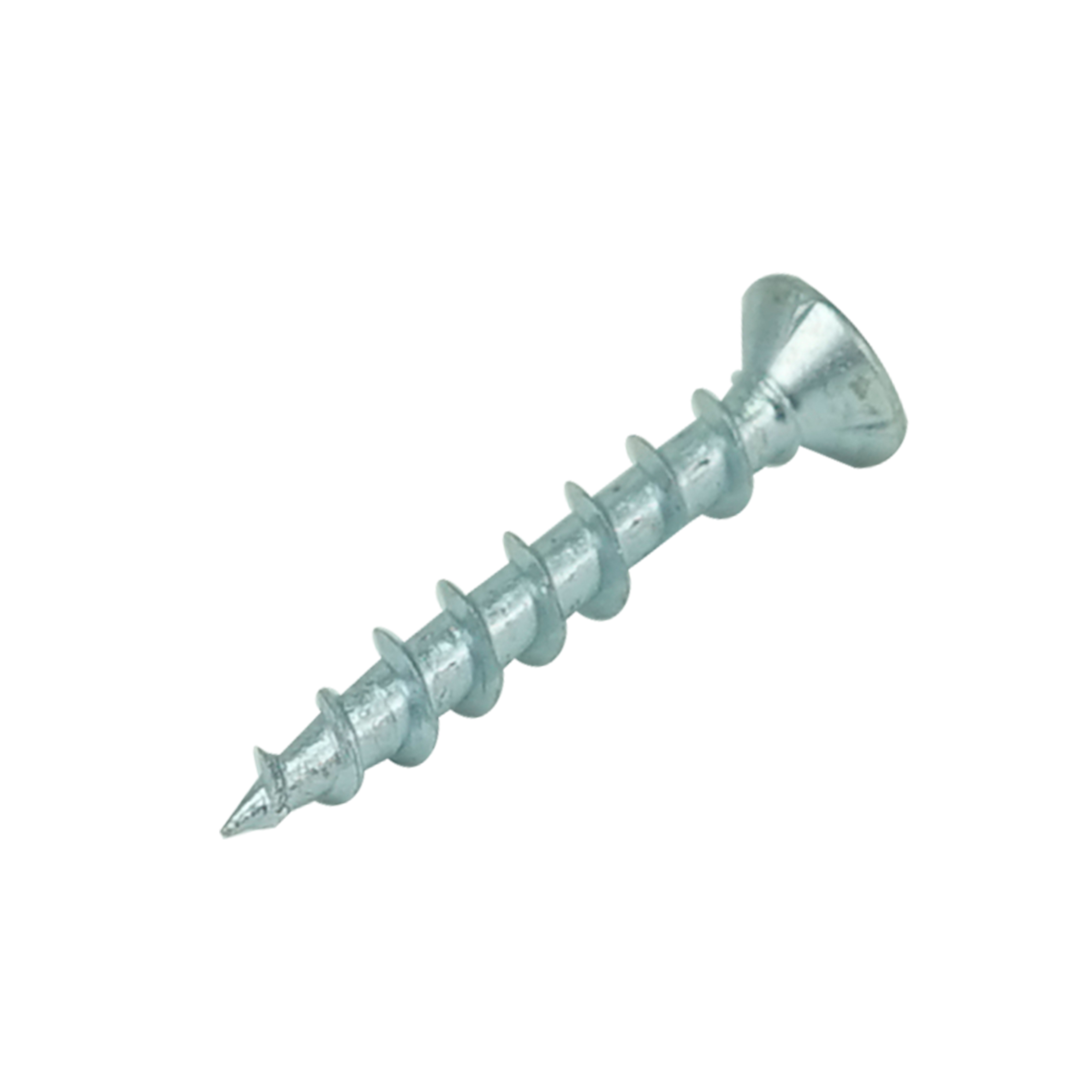 Саморез оконный (белый цинк) c острым наконечником и насечками на конусной части головки.