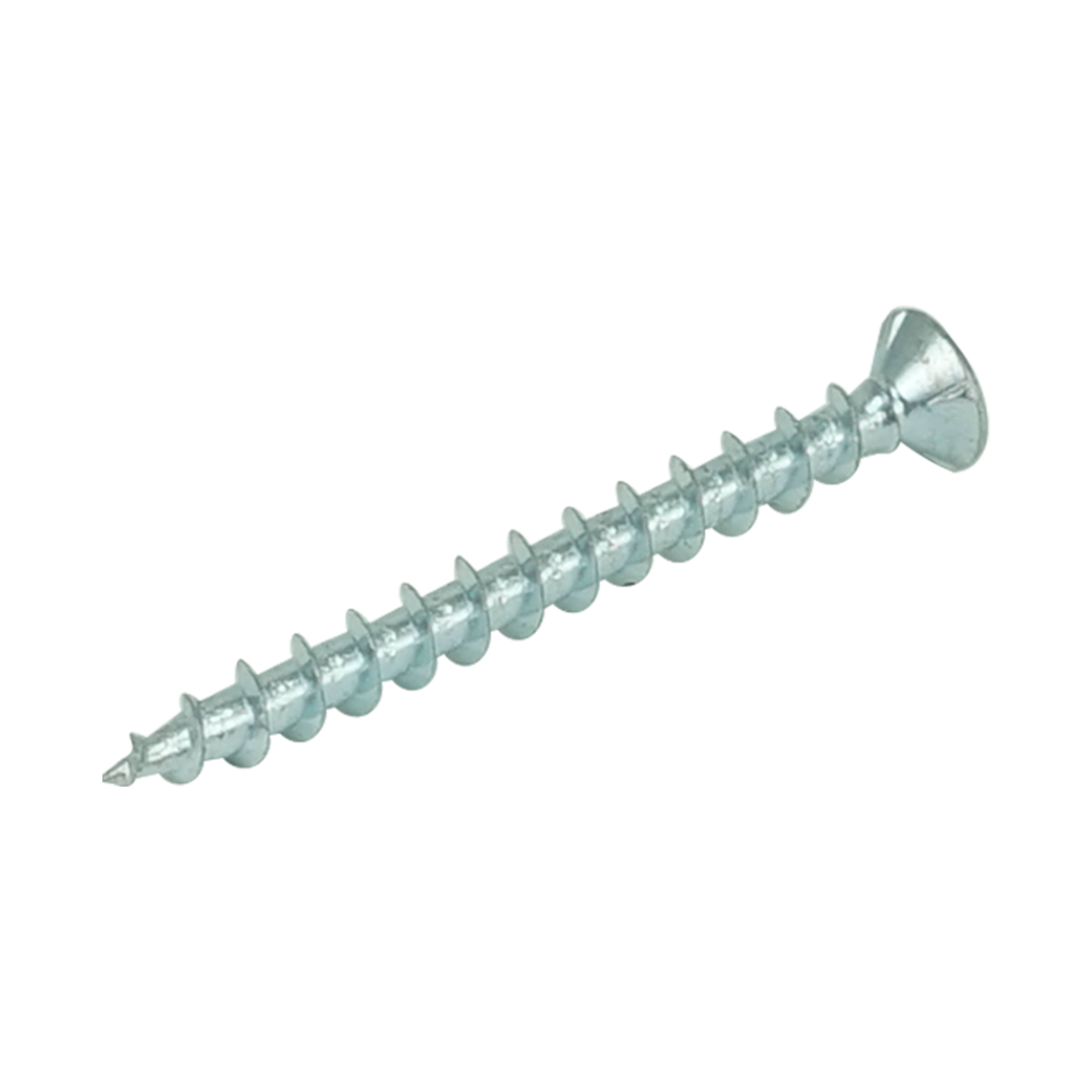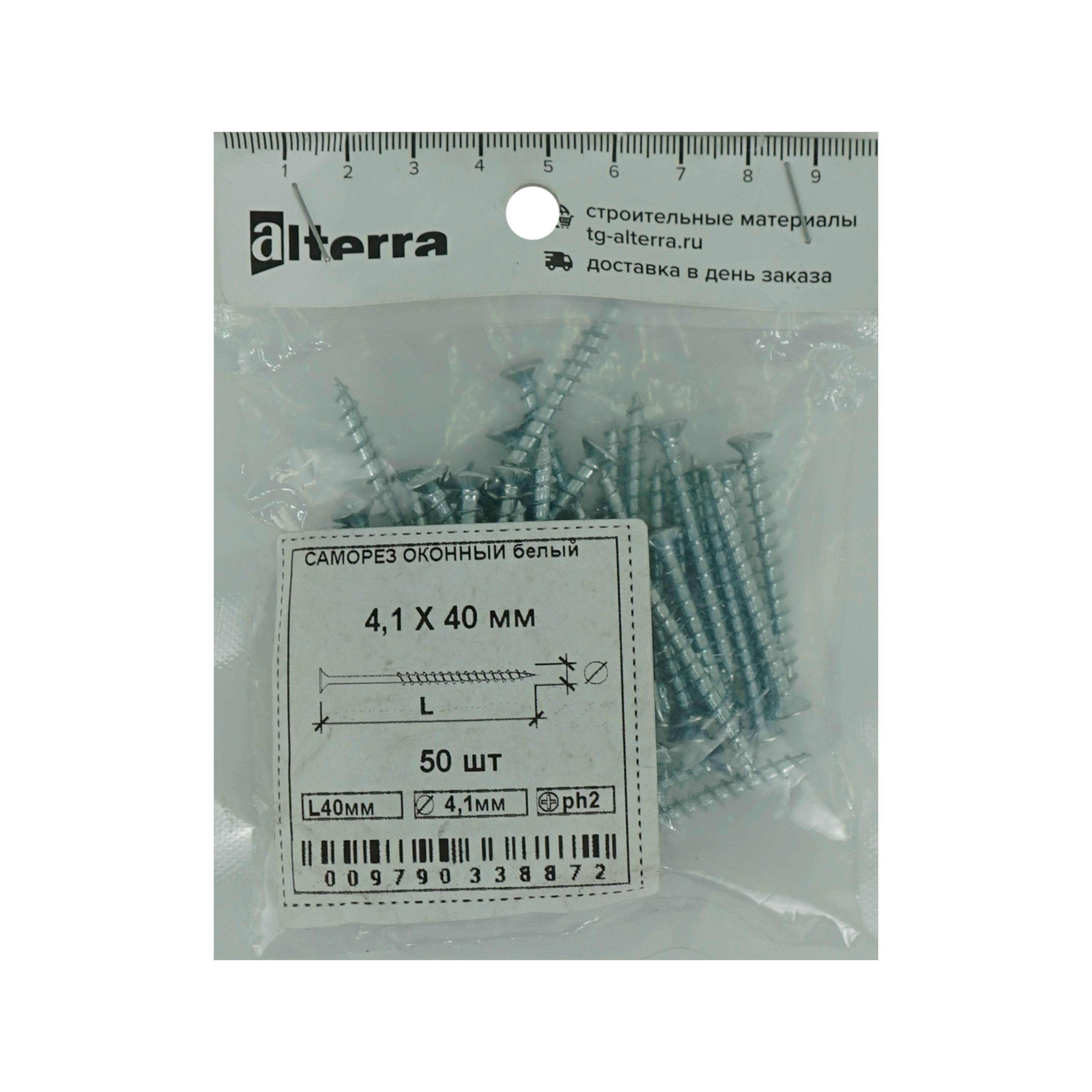Саморез оконный (белый цинк) c острым наконечником и насечками на конусной части головки.
