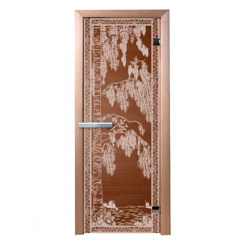 Дверь банная стеклянная Березка 1900х700х6мм с коробом, 2 петли, бронза, правая