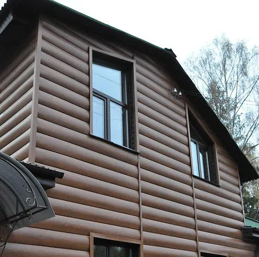 Сайдинг Альта-профиль «Блок-хаус» Карелия визуально почти неотличим от сруба. Благодаря нанесению декоративного слоя, панели еще точнее передают вид древесины.