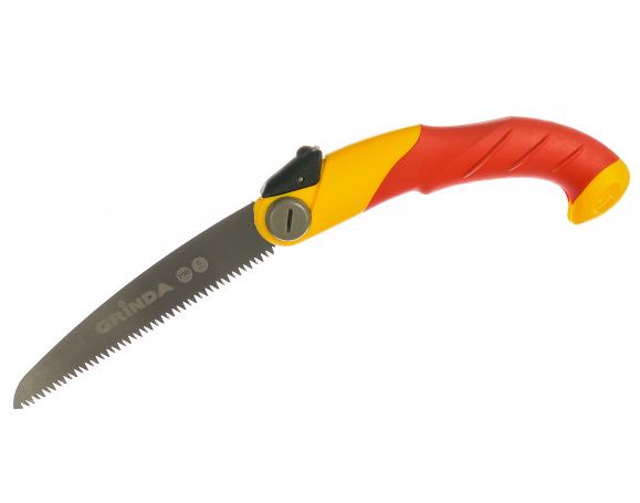 Ножовка Гринда садовая, складная – это ручной инструмент для ухода за кустарниками и деревьями. По завершении работы полотно прячется в рукоятку по принципу перочинного ножа.