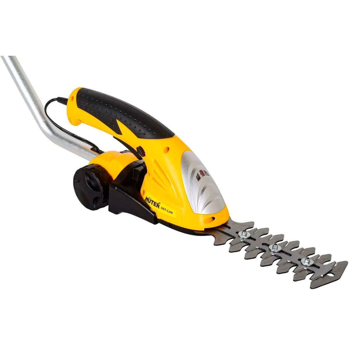 Huter GET-3,6H обладает двусторонними ножевыми брусьями, что позволяет производить подравнивание сразу в двух направлениях. При работе следите, чтобы ножи не натыкались на камни или стены. В противном случае они быстрее затупятся, или само устройство выйдет из строя.