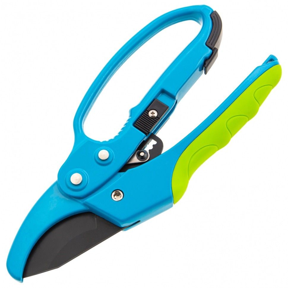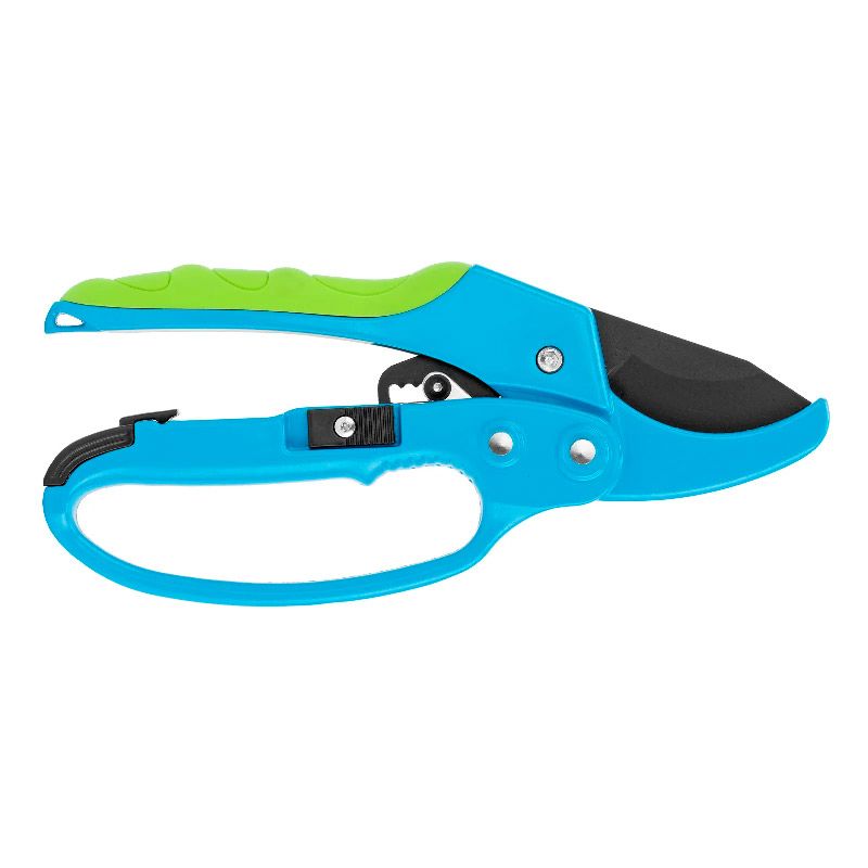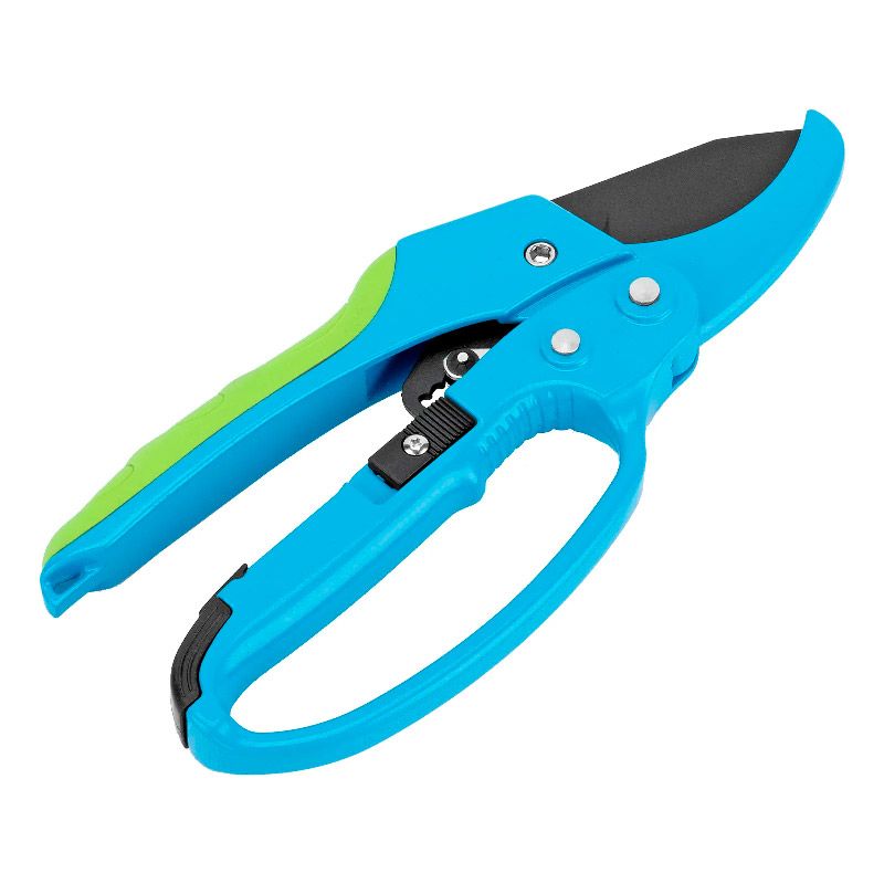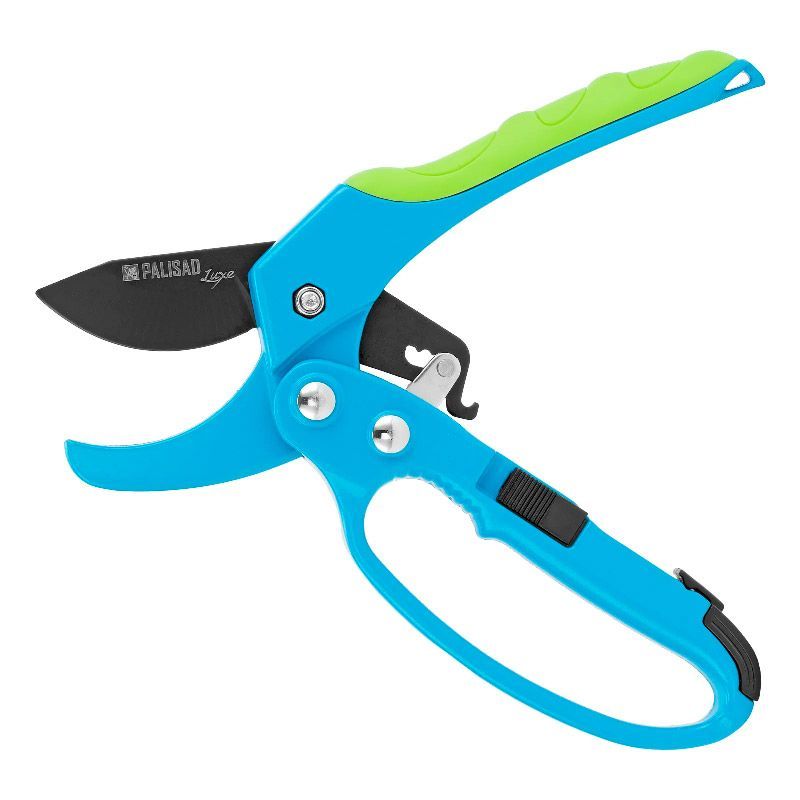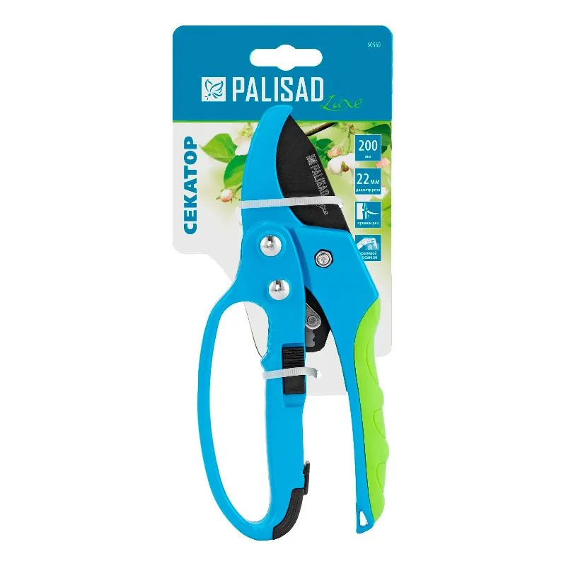 Секатор прямого реза Palisad, с храповым механизмом и металлическими обрезиненными рукоятками, используется для обрезки живых, сухих и увядших веток диаметром до 30 мм. Храповой механизм обеспечивает пошаговый рез, поэтому лезвия инструмента не сминают ветку, причиняя минимальный вред растению. Опорное лезвие способствует надежному удержанию ветки во время использования секатора. Регулировочный винт позволяет изменять плотность смыкания лезвий. Инструмент будет полезен для ухода за растениями на даче и в саду.